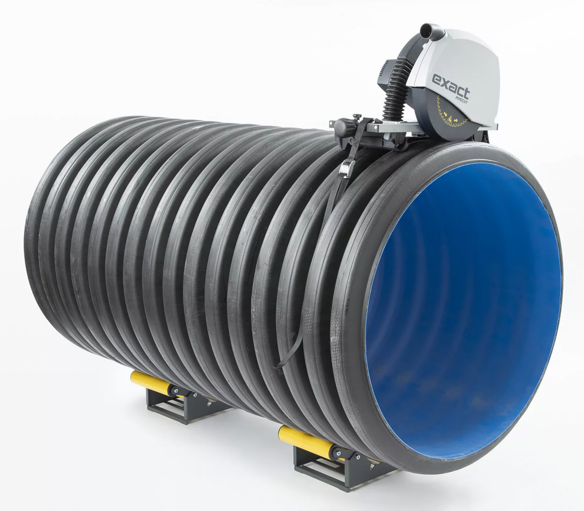 Easily cut plastic pipe up to 2.9" thick with the Exact PipeCut P1000 Pipe Cutter. Pipe saw for large diameter plastic pipe cutting.