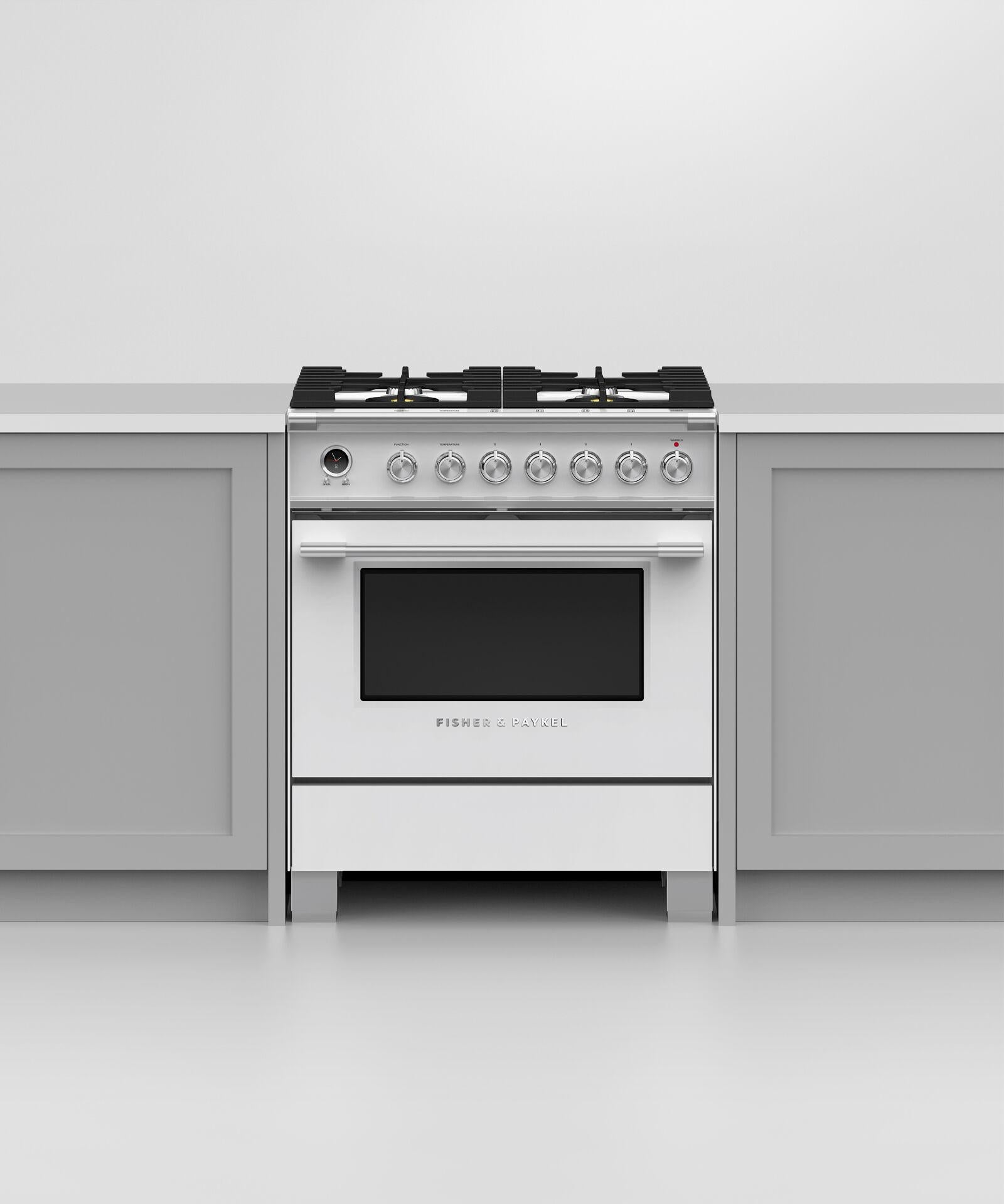 The brand Fisher & Paykel OR30SCG6W1 is a 30-inch dual fuel range that combines the precision of a gas cooktop with the even heat distribution of an electric oven, offering excellent cooking performance. With a generous 3.5 cu. ft. oven capacity, the oven provides ample space for cooking large meals, while the AeroTech™ system ensures consistent and even heat throughout the oven. This model features 4 sealed burners, including two dual wok burners that offer versatile cooking capabilities, such as stir-frying and searing. The range includes 9 oven functions, such as Roast, Aero Pastry™, and Steam Bake modes, allowing for a variety of cooking styles. The oven also features a self-cleaning function for easy maintenance. Additionally, the cool-touch door enhances safety, ensuring that the door remains cool during cooking. The warming drawer keeps food warm until ready to serve, making the OR30SCG6W1 a highly functional and reliable addition to your kitchen.