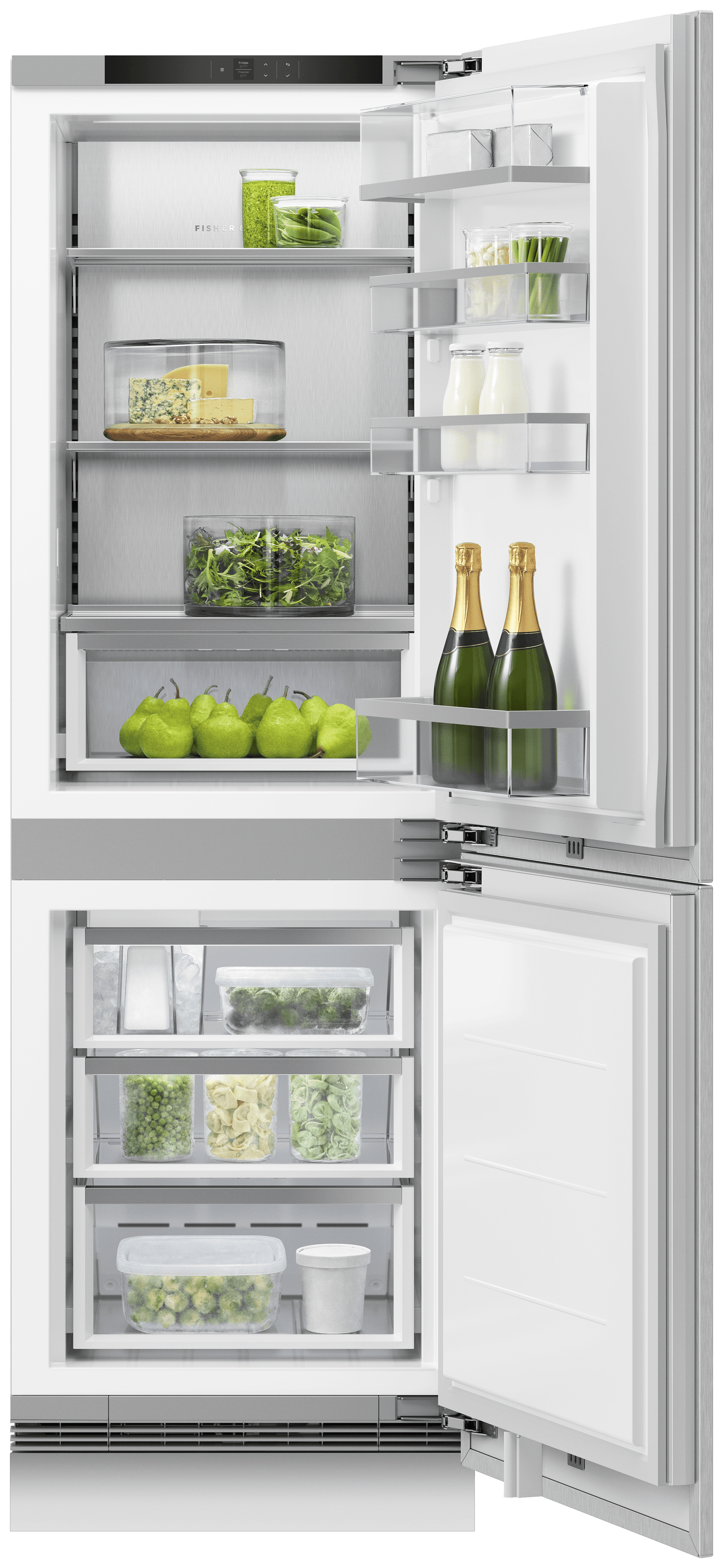 The brand Fisher & Paykel RS2474BRU1 Series 9 offers high‑end, integrated refrigeration in a compact 24" footprint with both freezer and refrigerator compartments. Equipped with activeSmart™ temperature management, it maintains consistent freshness while minimising energy use. The internal ice and water dispenser delivers chilled, filtered water and ice without disrupting the clean cabinet lines. Featuring built‑in interior lighting and adjustable glass shelves, it provides ample visibility and flexible storage. The sleek flush finish door panel-ready design blends seamlessly into cabinetry, while soft-close doors ensure quiet operation. Enhanced with door alarm and holiday on/off mode, the RS2474BRU1 balances convenience, elegance, and performance in modern kitchens.