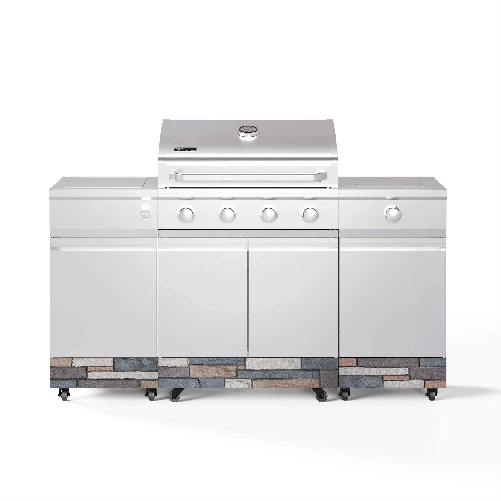 A: Constructed with stainless steel burners, porcelain-enameled cast iron grates, and a durable powder-coated exterior, built to withstand outdoor conditions.