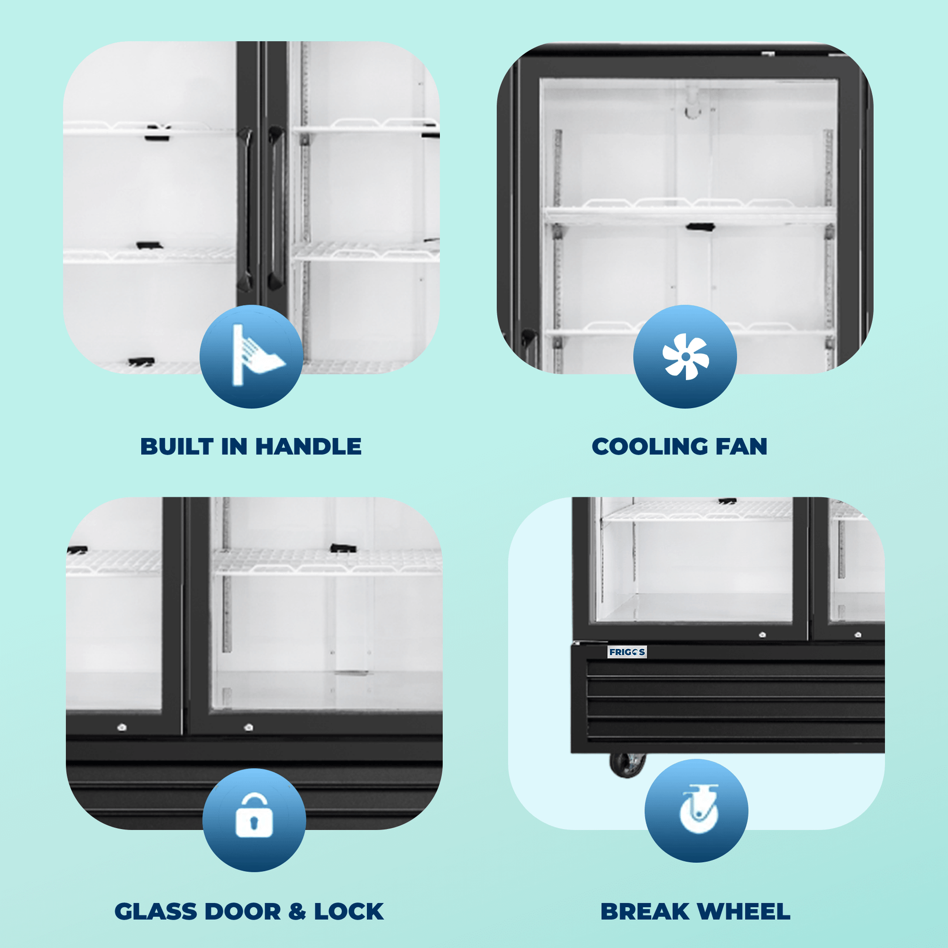 A: Designed for large volumes of chilled products with triple-door access for organization and convenience.