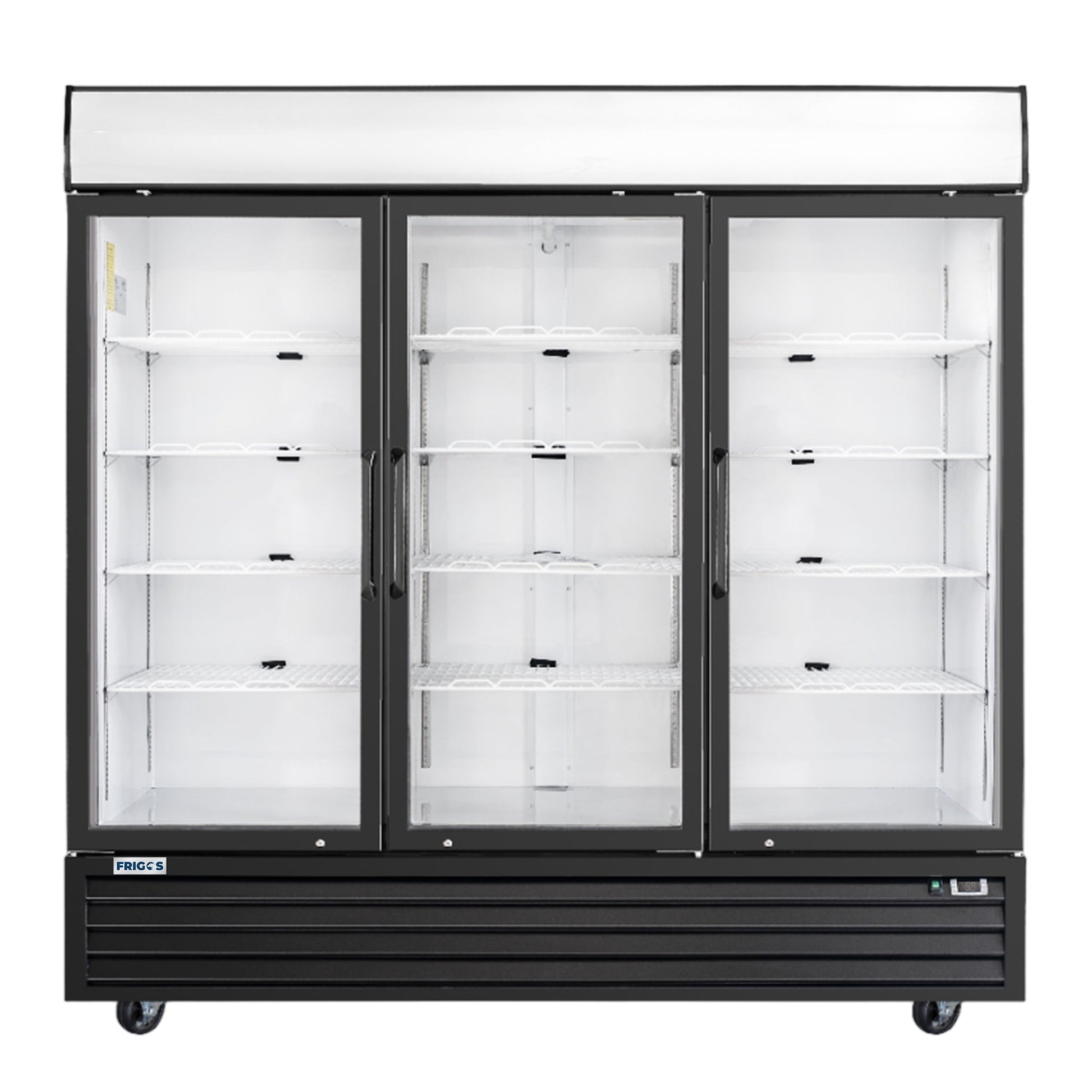 Commercial Merchandising Refrigerator 80" Width Black Swing Glass 3 Door with LED Lighting Frigos FG-MR-3D-G