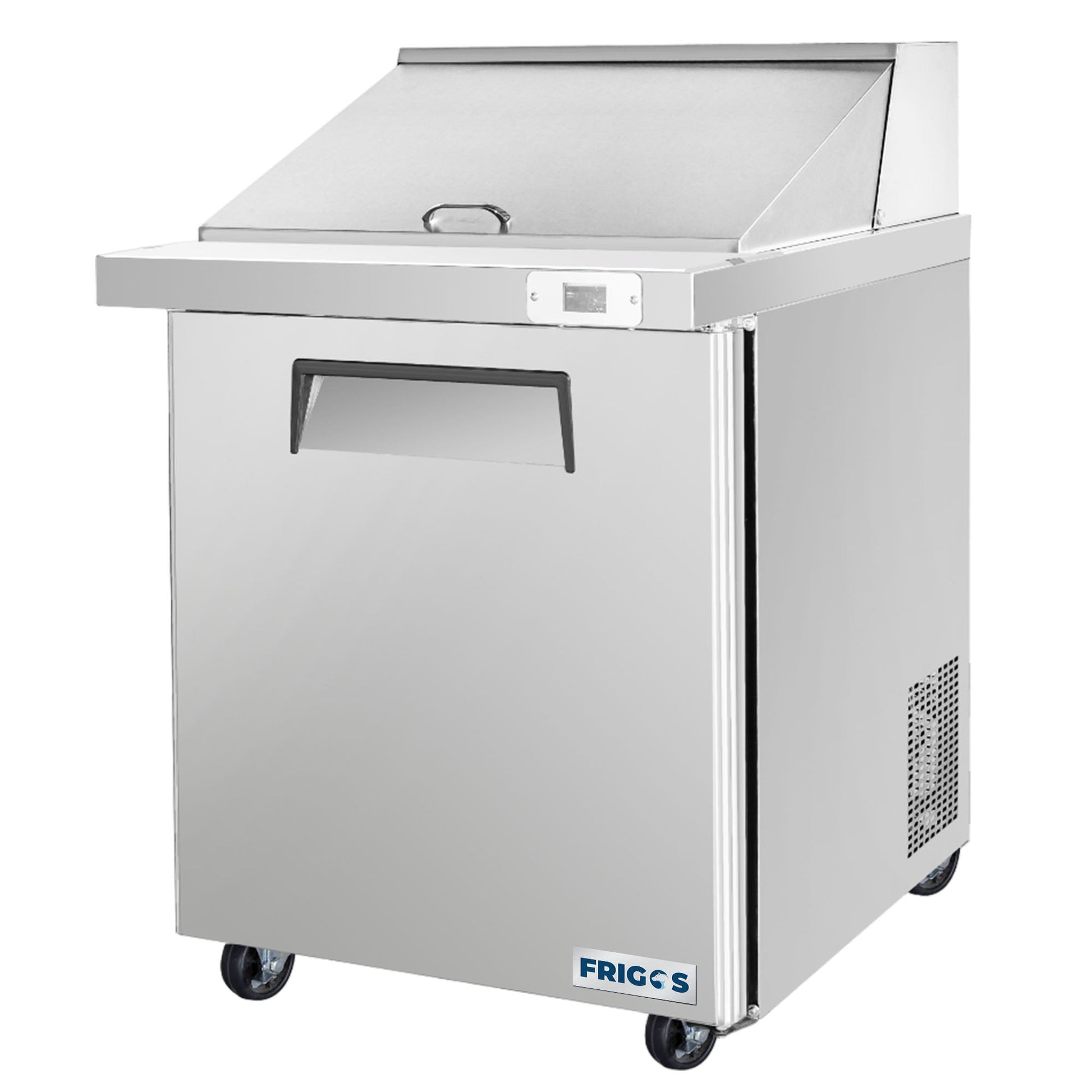 Space-saving mega top: 29" width with one door provides refrigerated storage and elevated prep space.