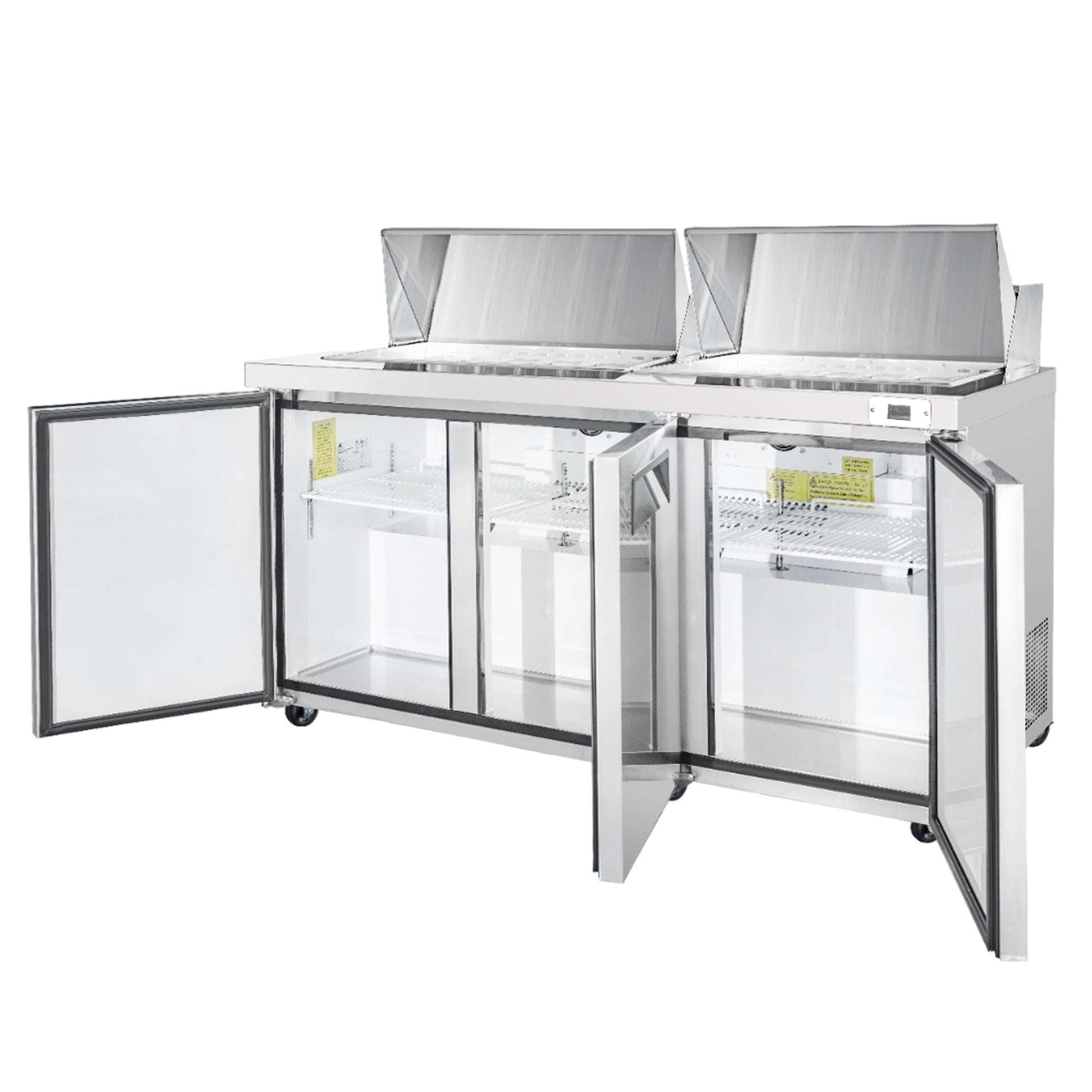 High-capacity prep: 60" width with two solid doors offers ample refrigerated space for sandwiches, salads, and fresh ingredients.