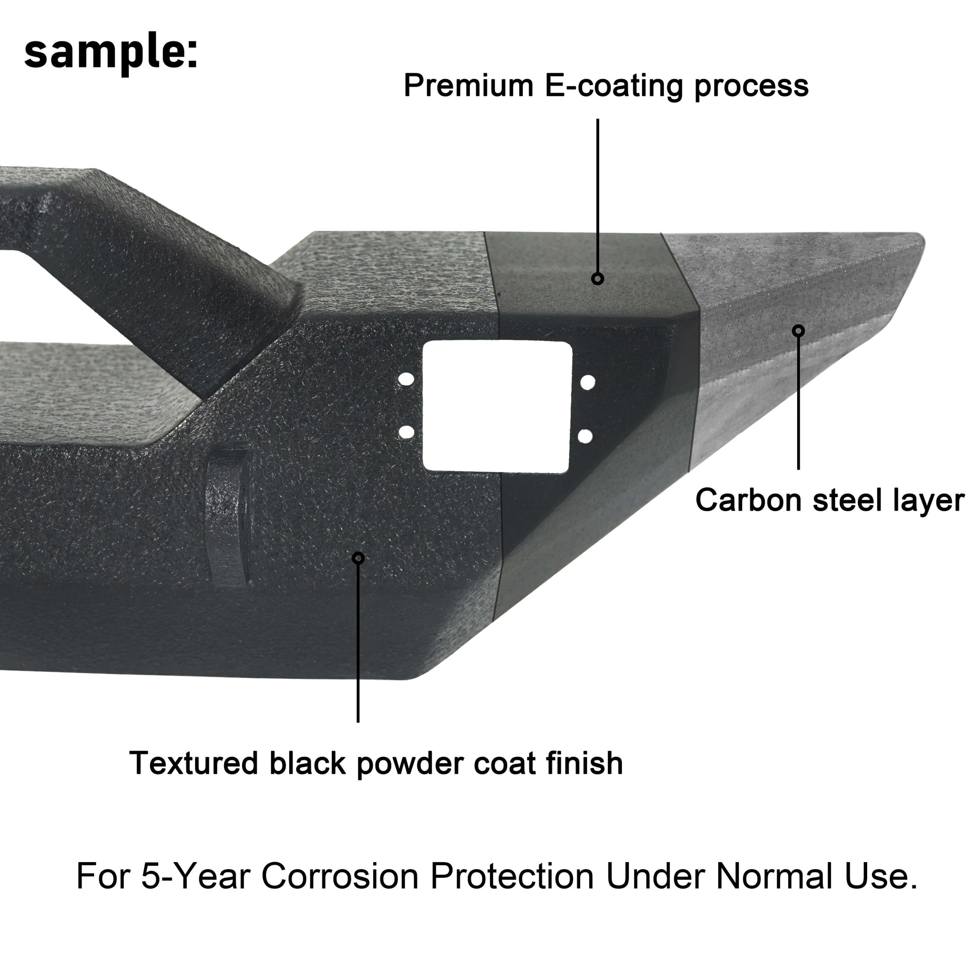 Textured black powder-coated finish for rust resistance and sleek off-road styling