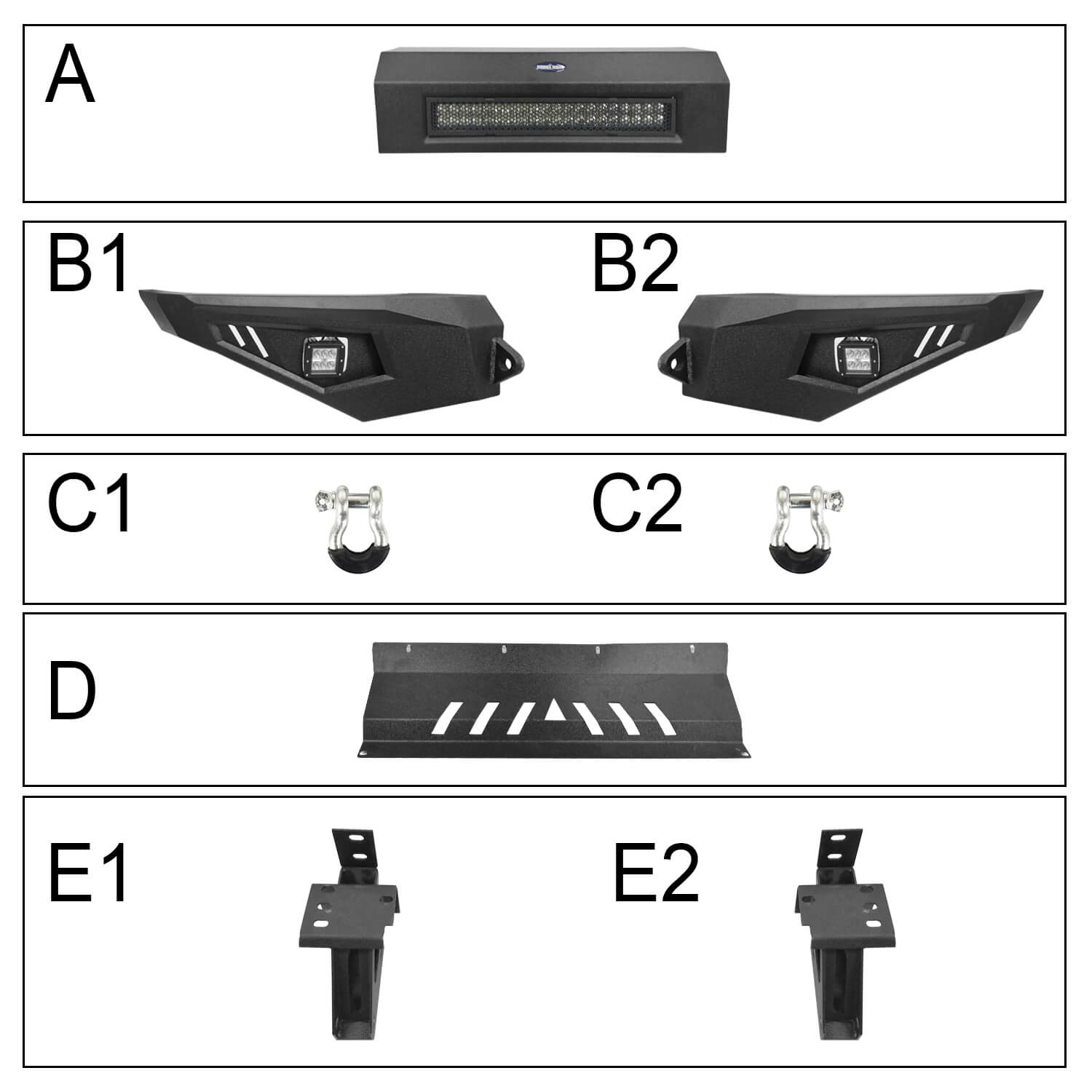 Front bumper features an integrated winch plate rated up to 12,000 lbs and mounting points for auxiliary LED lights (lights sold separately)