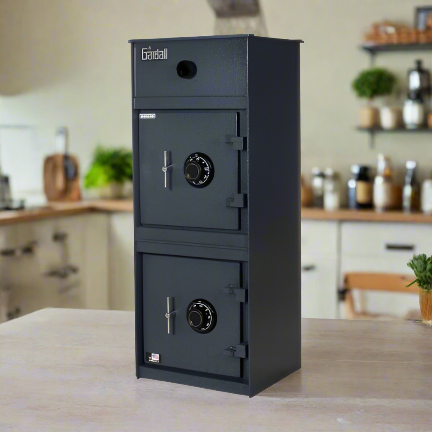 Keep your cash deposits safe and secure at all times with the Gardall Rotary Chamber Heavy Duty Double Door Depository Safe RC1237CK/KC