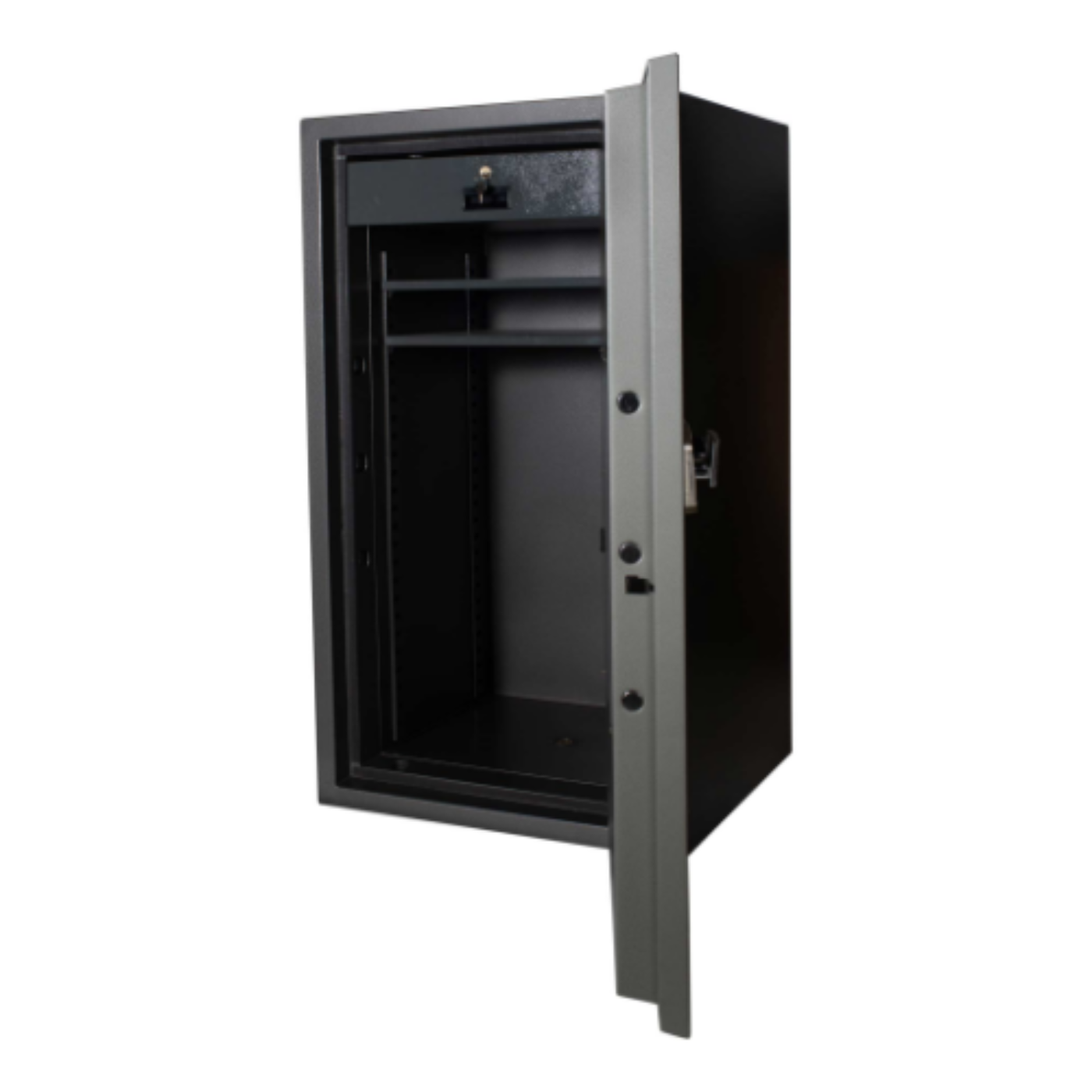 Other features of our inexpensive, economical two-hour record safe include a lifetime fire exposure replacement guarantee. The Gardall SS4422-G-CK Two-Hour Record Safe also features plated interlocking bolts that extend into the safe walls to prevent tampering and removal of the doors. The doors are precision built of extra heavy steel, full 180-degree swing pivoting on heavy-duty hinges with interlocking, tongue, and groove closure on all sides of the door frame (this helps greatly in a fire).