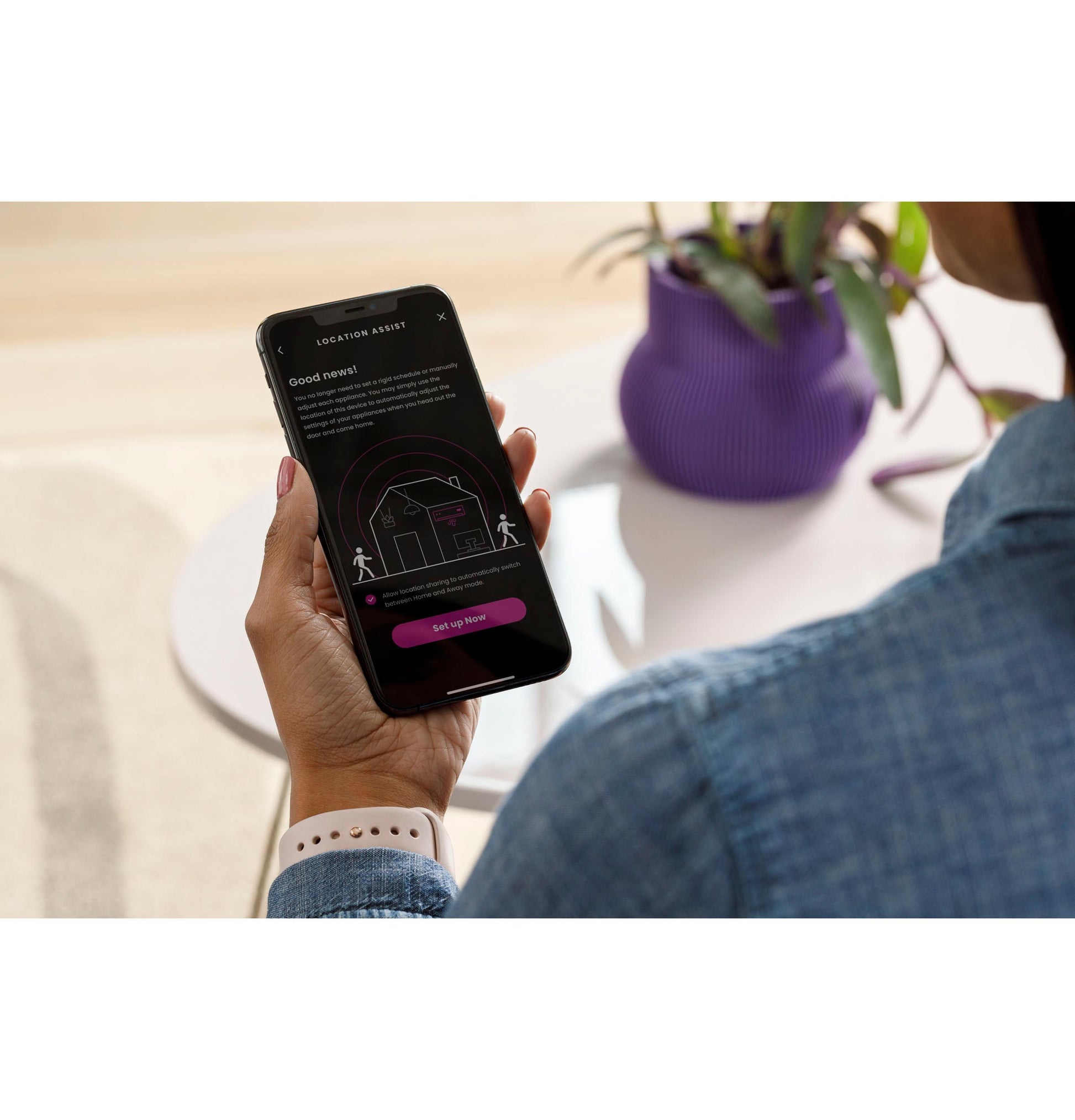 Geofence technology pinpoints your smartphone location then automatically adjusts the smart air conditioner settings for when you're home