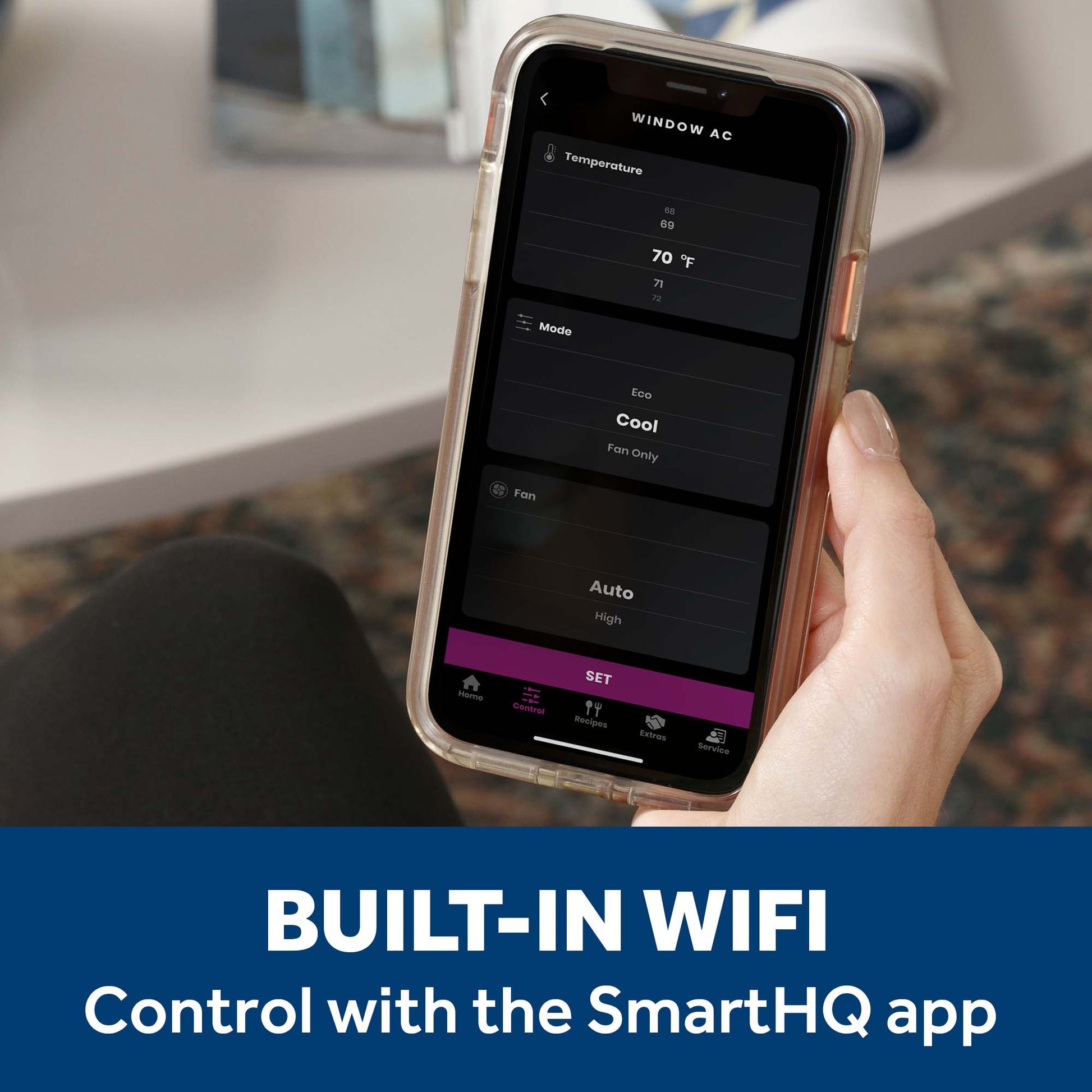 Use the SmartHQ app to control and monitor this Wi-Fi enabled smart AC window unit from anywhere, giving you connected peace of mind and the option to have the room at the desired temperature when you get home.