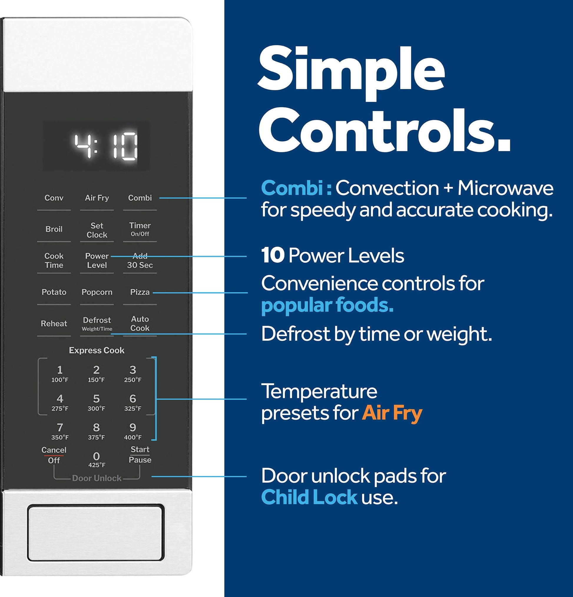 Versatile Cooking Power: Combines convection, microwave, and air fry functions for fast, crispy, and evenly cooked meals.