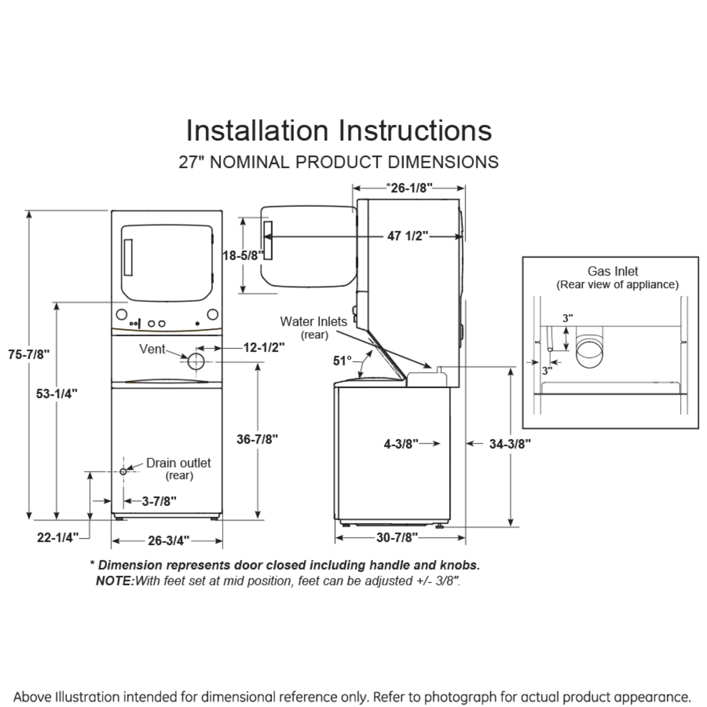 The brand GE GUD27GESNWW delivers a complete laundry solution featuring a 3.9 cu. ft. capacity washer with a stainless steel basket and a 5.9 cu. ft. capacity gas dryer—built to handle family-sized laundry loads with ease. The washer provides powerful, balanced agitation and multiple wash cycles for diverse fabric care, while the gas dryer offers fast, even drying with convenient drying sensors and a sturdy drum interior. Both units come in a clean white finish with intuitive top controls, offering practical features like a temperature gauge on the dryer and a range of wash options on the washer. Together, they deliver dependable performance, installation flexibility, and everyday laundry efficiency.