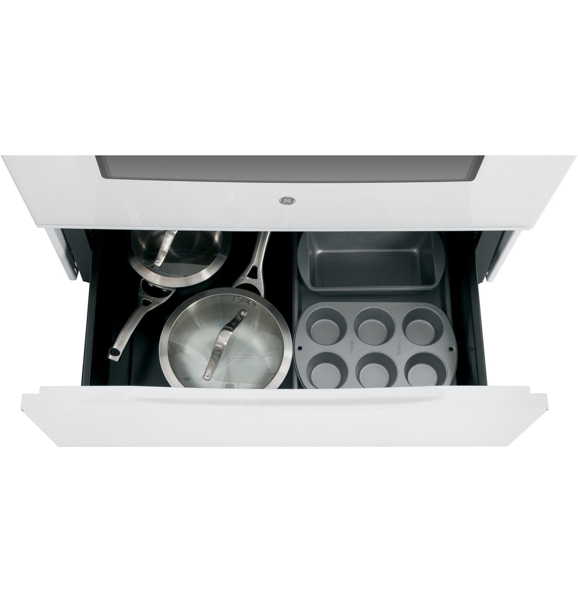 Large trays and other cookware can be conveniently stored for quick access