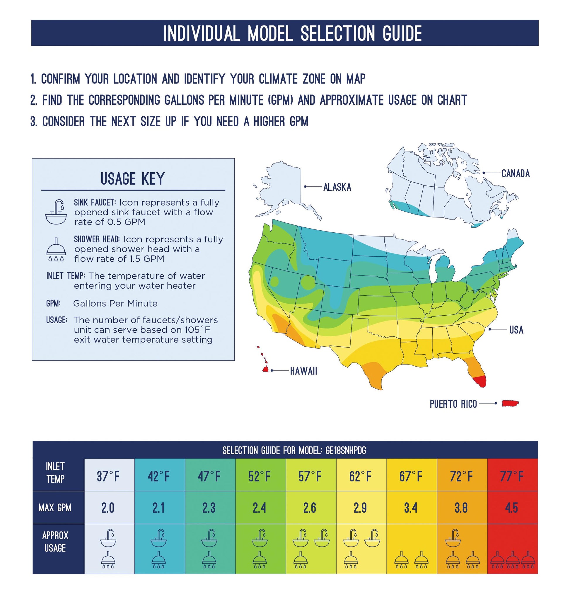 Enough to run 1 faucet and 2 showers simultaneously in warm climates (*Results are based on 72 F inlet water temperature and 105 F outlet water temperature)