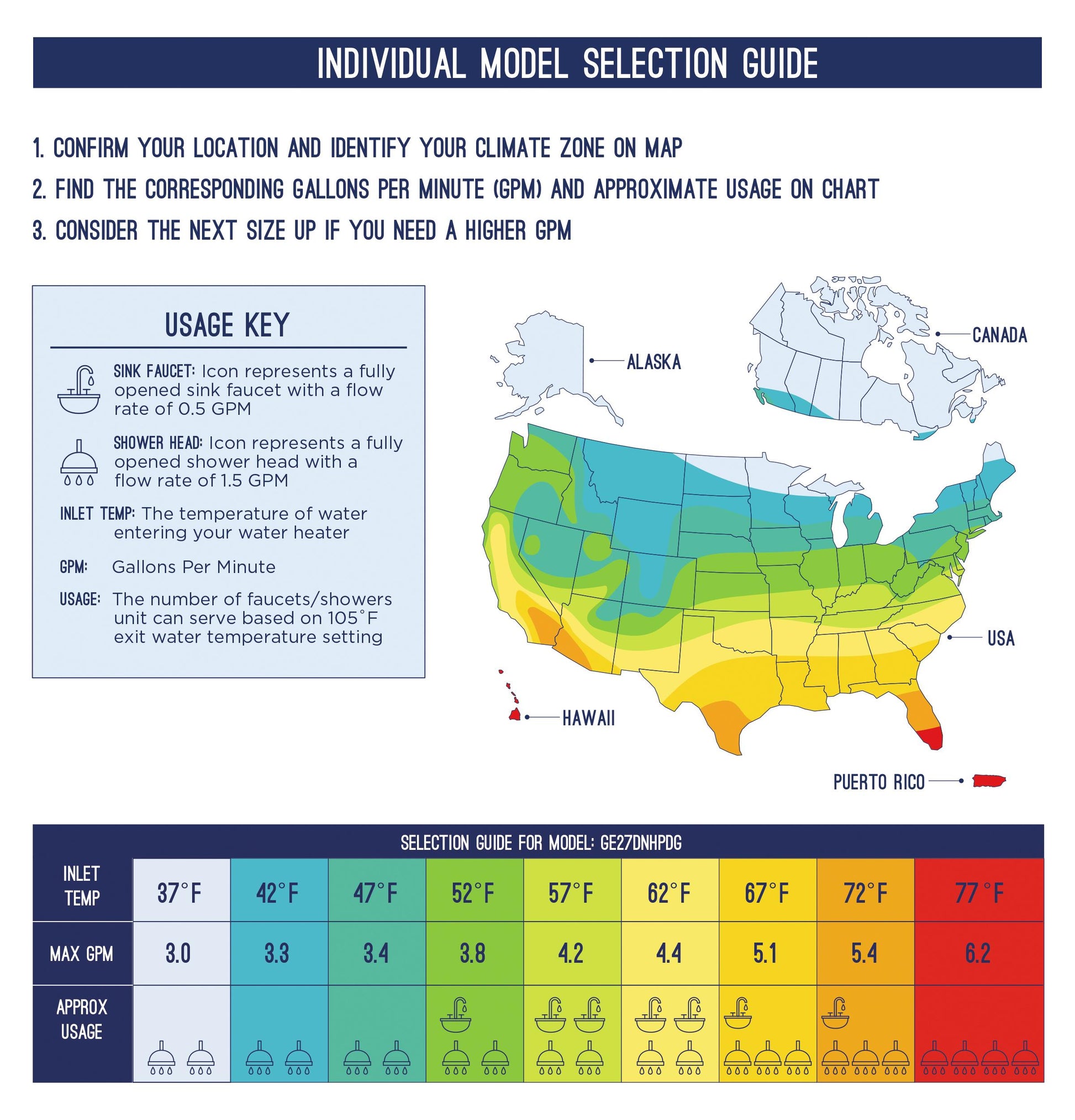 Whole-Home Hot Water: Provides up to 5.4 gallons per minute, enough for multiple showers and faucets simultaneously in warm climates.