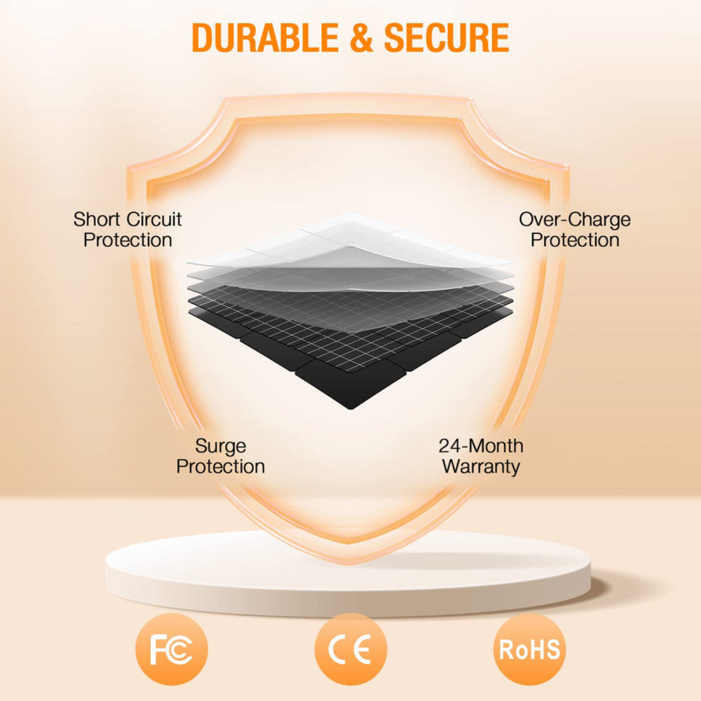 With a folded size of 24.8*22.05*1.77 inches and a lighted weight of only 11.35lbs, the GRECELL UB200 is 30+% lighter than other 200W solar panels and more portable with one hand. With super slim unfolded thickness:0.98inch, it will not take up much space when stored or used. 4 adjustable kickstands, 4 metal reinforced mounting holes to help you fold/hold/hook it up anywhere. Tips: For best results, we recommend using GRECELL solar panels with GRECELL solar generators.