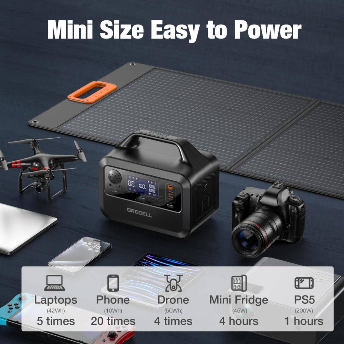 A: Yes, the GRECELL 300W is compact, portable, and paired with an 80W solar panel, making it perfect for outdoor activities, camping, and off-grid use.