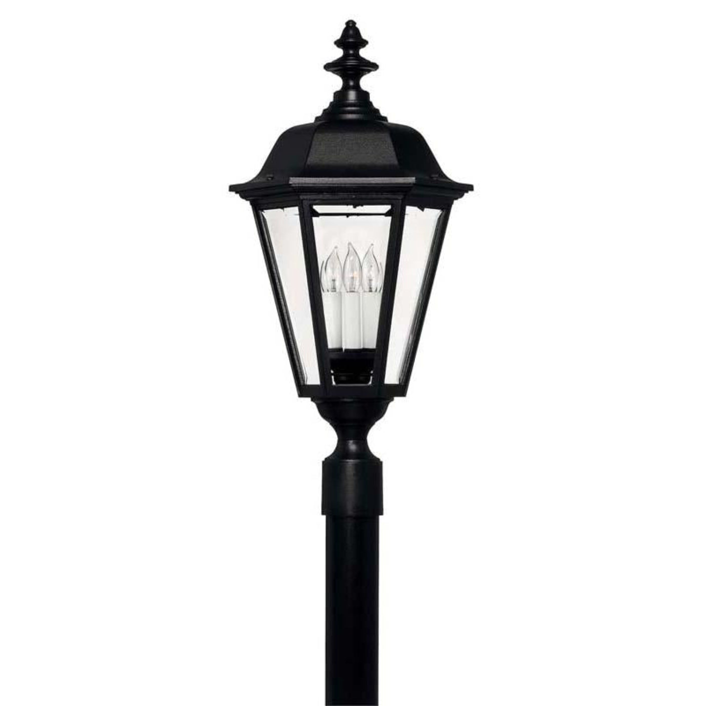 Manor House is a classic lantern design featuring durable cast aluminum, clear beveled glass panels and a bold Black finish. Select-A-Lite options come standard with both candelabra and medium based sockets.