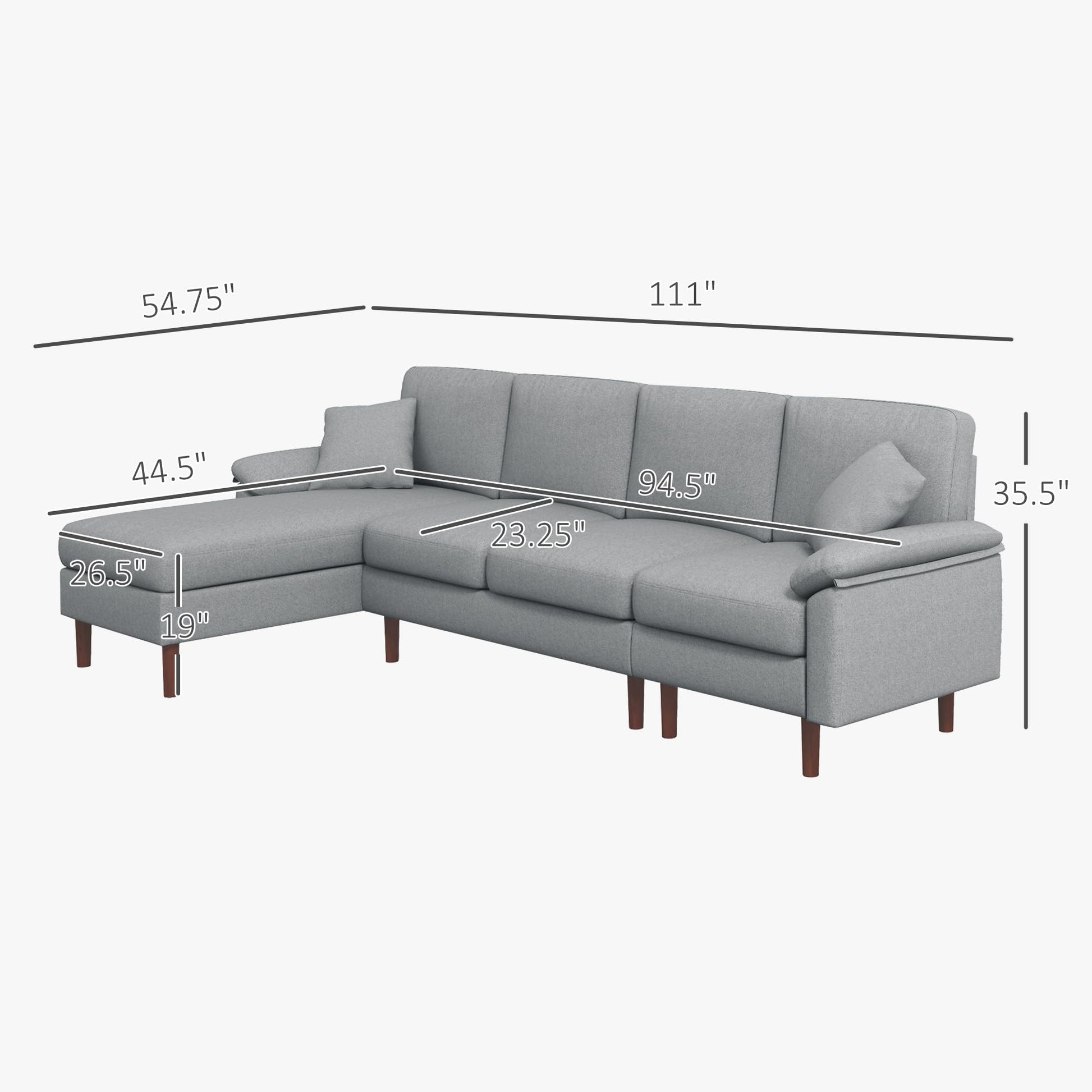 HomCom Fabric Sectional Couch with Reversible Sleeper Sofa, Modern L Shaped Sectional Sofa with Pillows, Wooden Legs for Living Room, Apartment and Office, Gray - B0CVX1N2B8