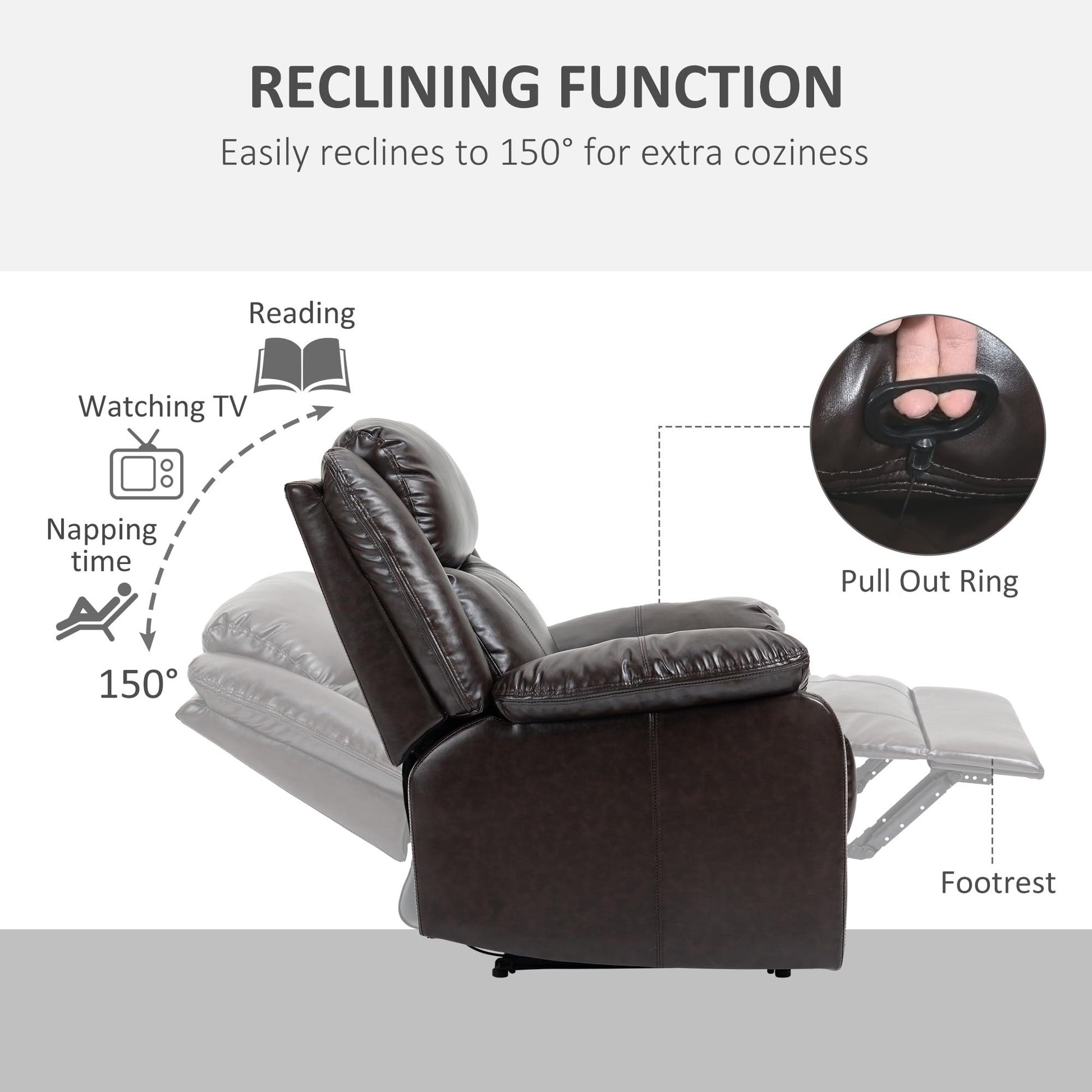 HomCom PU Leather Manual Recliner with Thick Padded Upholstered Cushion and Retractable - B096NGF927