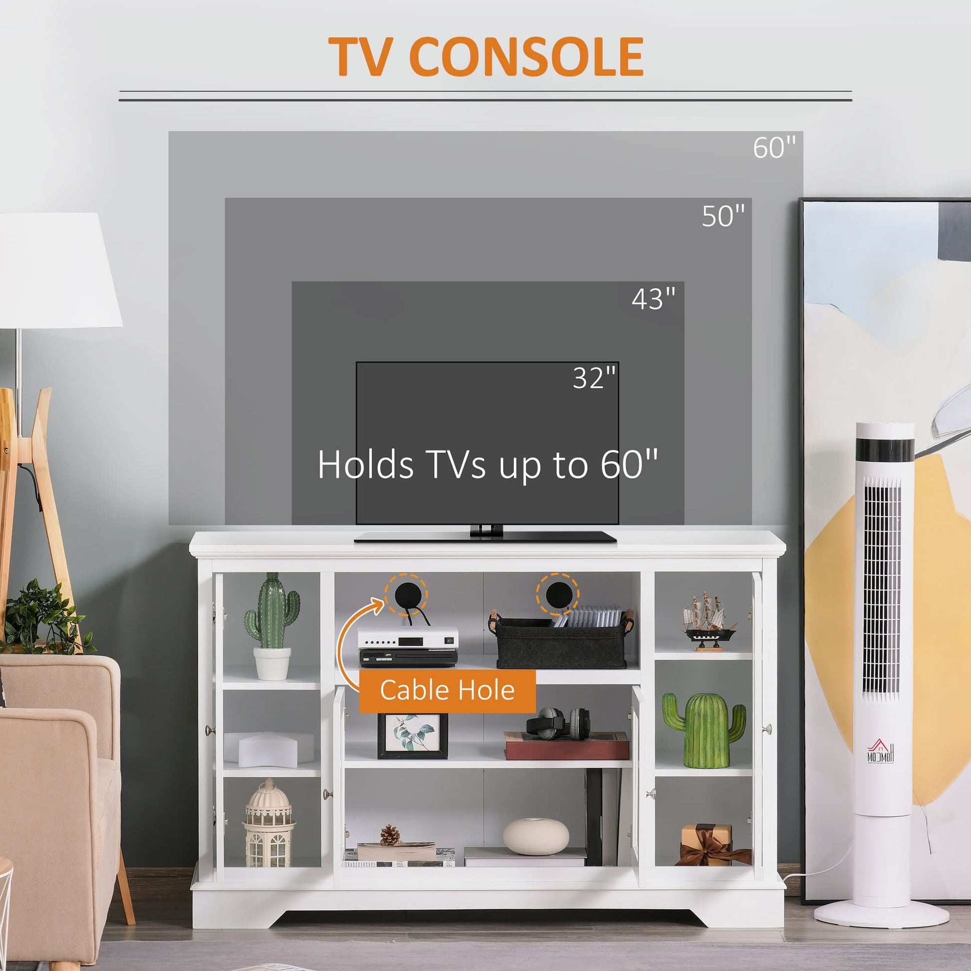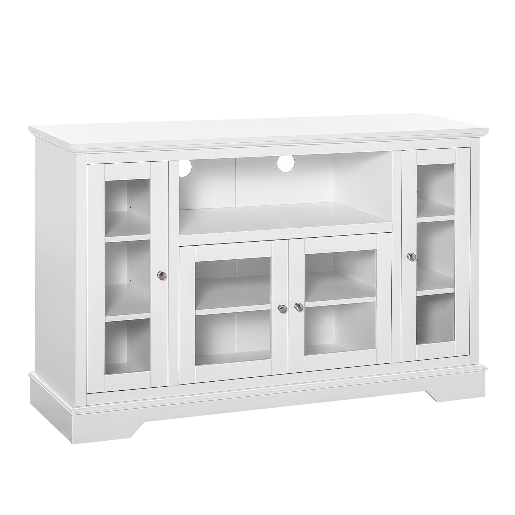 • Versatile Use: This living room cabinet can also serve as a TV stand, which supports TV up to 60". The cable management system is great for your DVD player, power amplifier, and other home theater equipment. Shelves can be adjusted or removed to create a larger space.