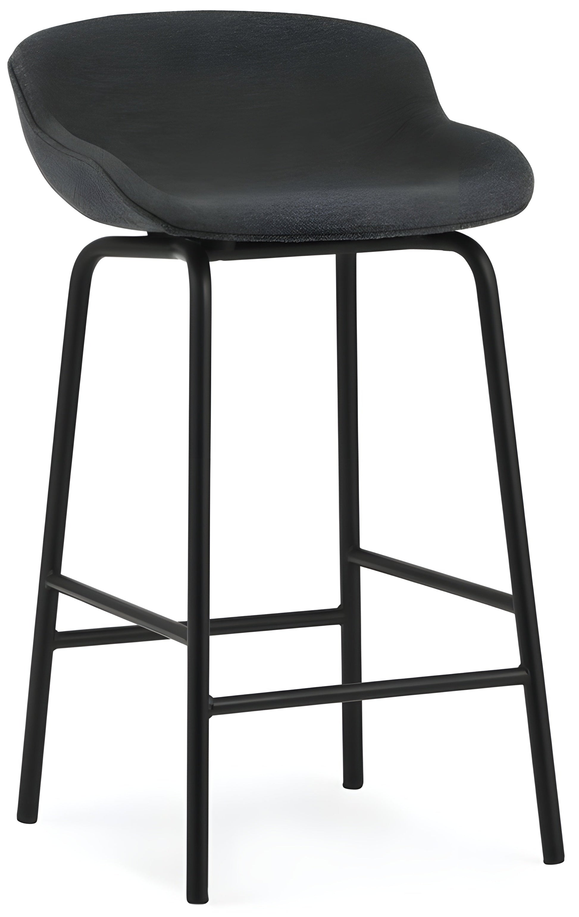 The Hyg Counter Stool - Full Upholstery features a durable pressed polypropylene shell with premium fabric or leather upholstery. Its steel frame adds stability while maintaining a light, refined look. With soft curves and ergonomic design, this stool creates a relaxed seating experience. Whether used in a home bar or a commercial setting, this piece brings warmth and sophistication to any environment.