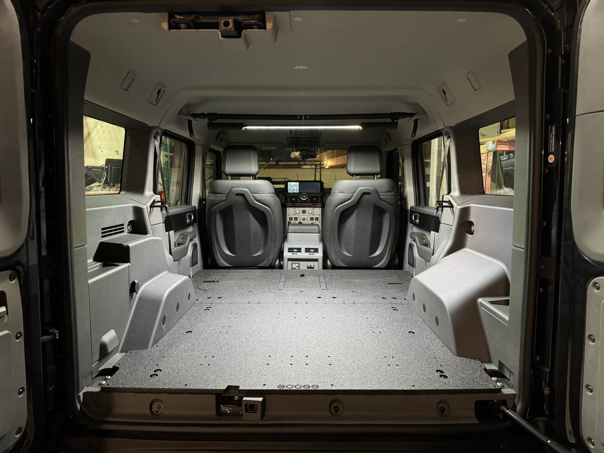 Maximize the functionality of your Ineos Grenadier with the Second Row Seat Delete Plate System™, engineered to provide ample storage space and compatibility with Goose Gear Modules or your own custom storage system and accessories. This 100% second-row delete requires the removal of the seat, seat frame, and the surrounding plastic trim panels that house electrical components under the factory seat.