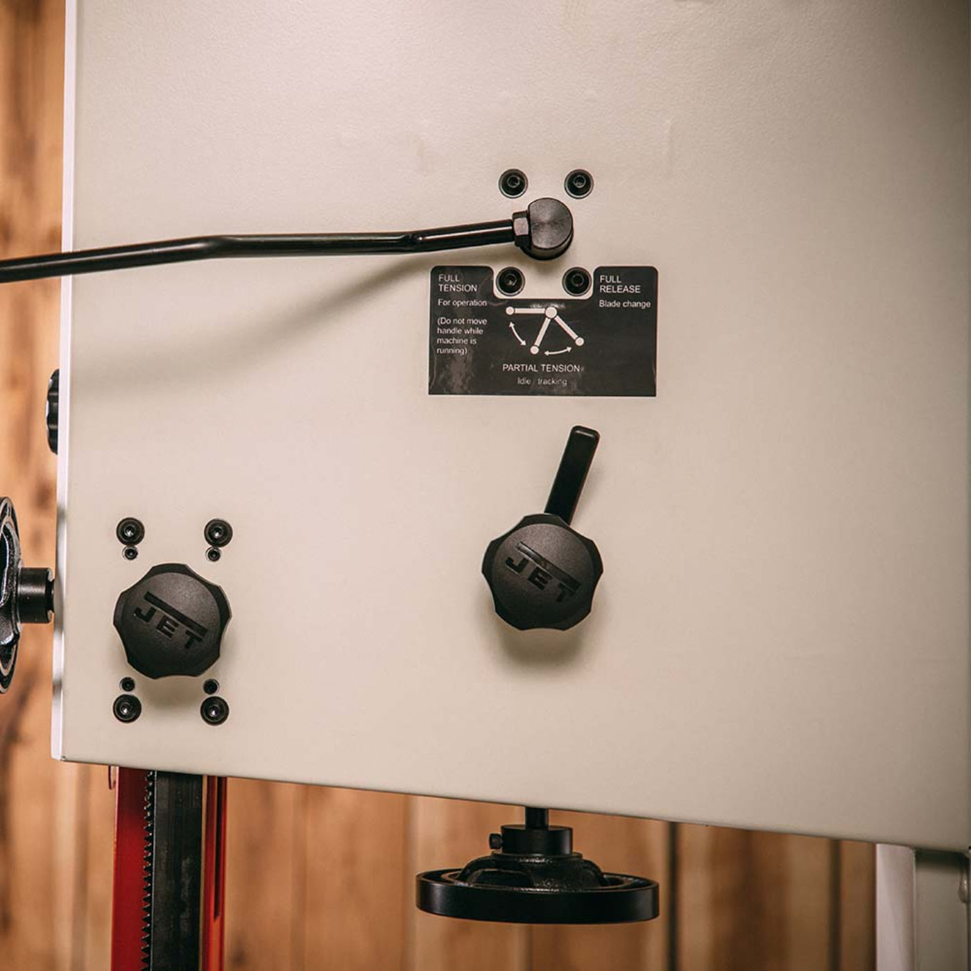 The table is slotted and the guide post has a stress-free magnetic door on the front for efficient blade changes. Large, independently adjustable guides are tool-less to save you time on set up. The JET 15" steel frame bandsaw is engineered to build great projects through superior performance.