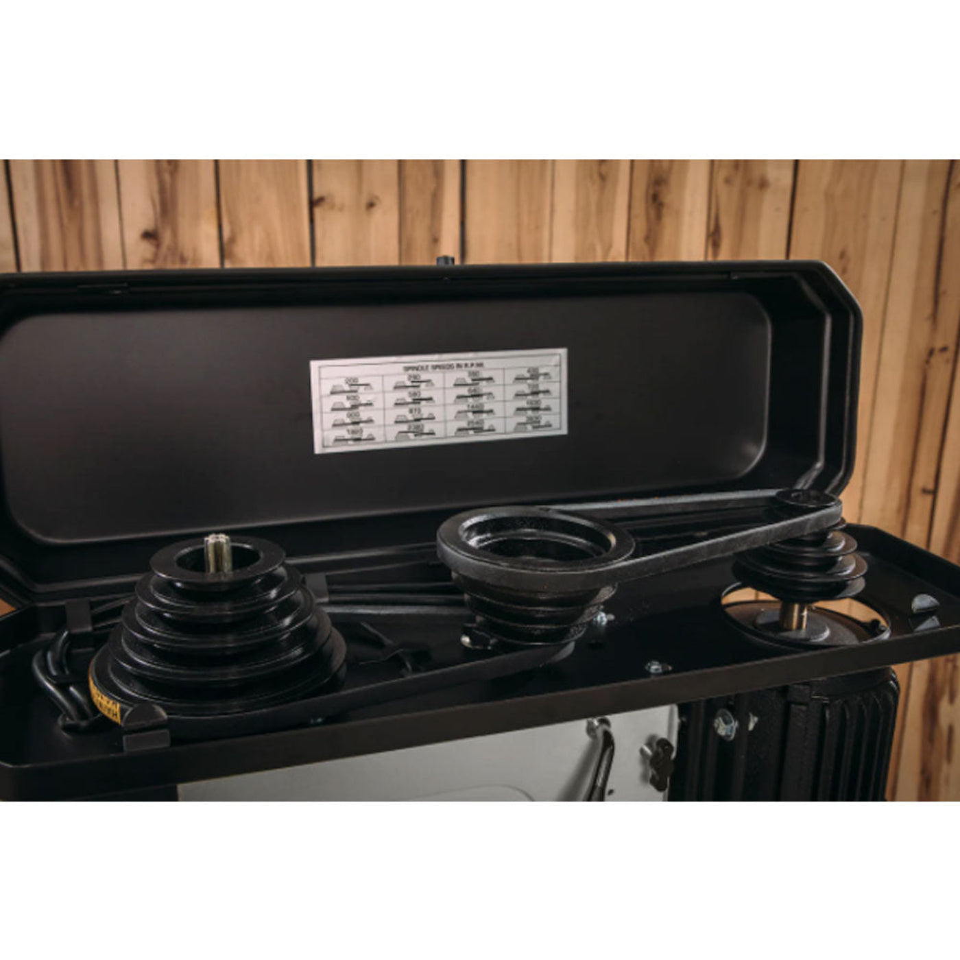 A: Features a 16-1/2" swing and a powerful 3/4 HP motor.