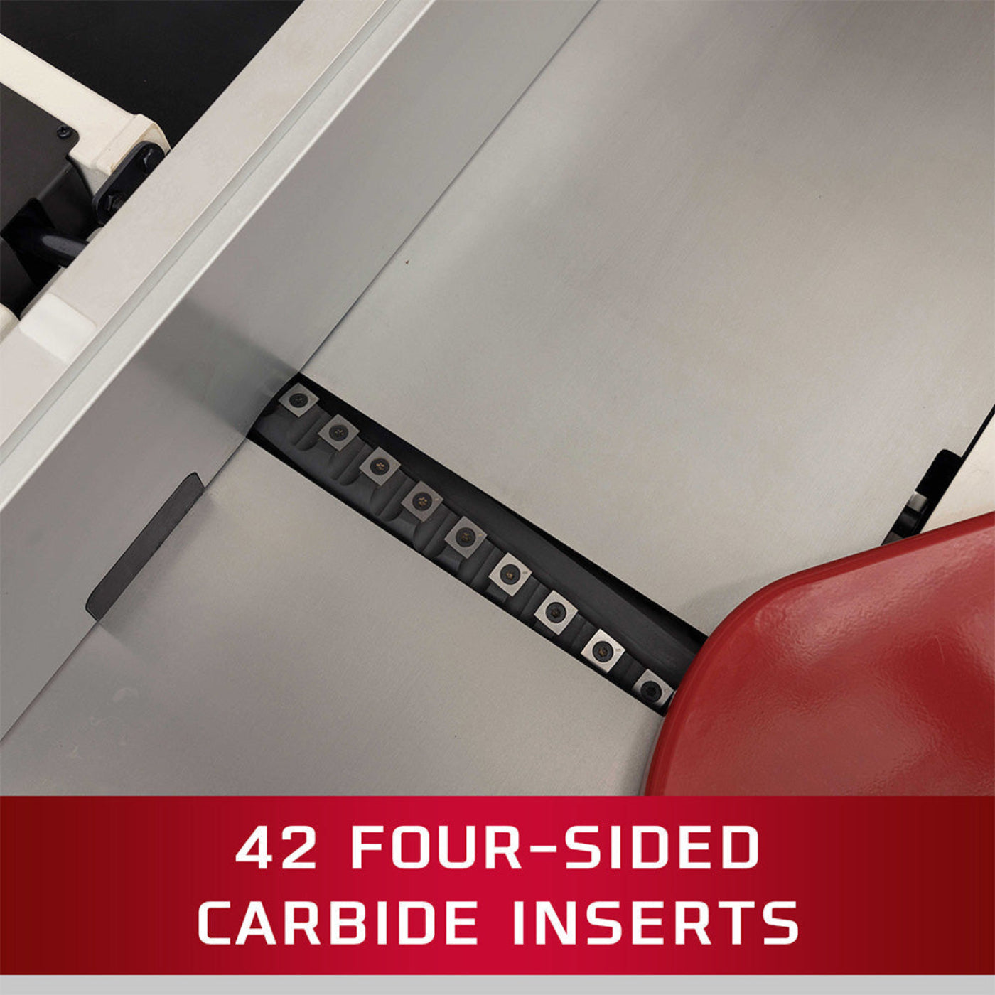 12" helical head jointer/planer delivers smooth, precise cuts.