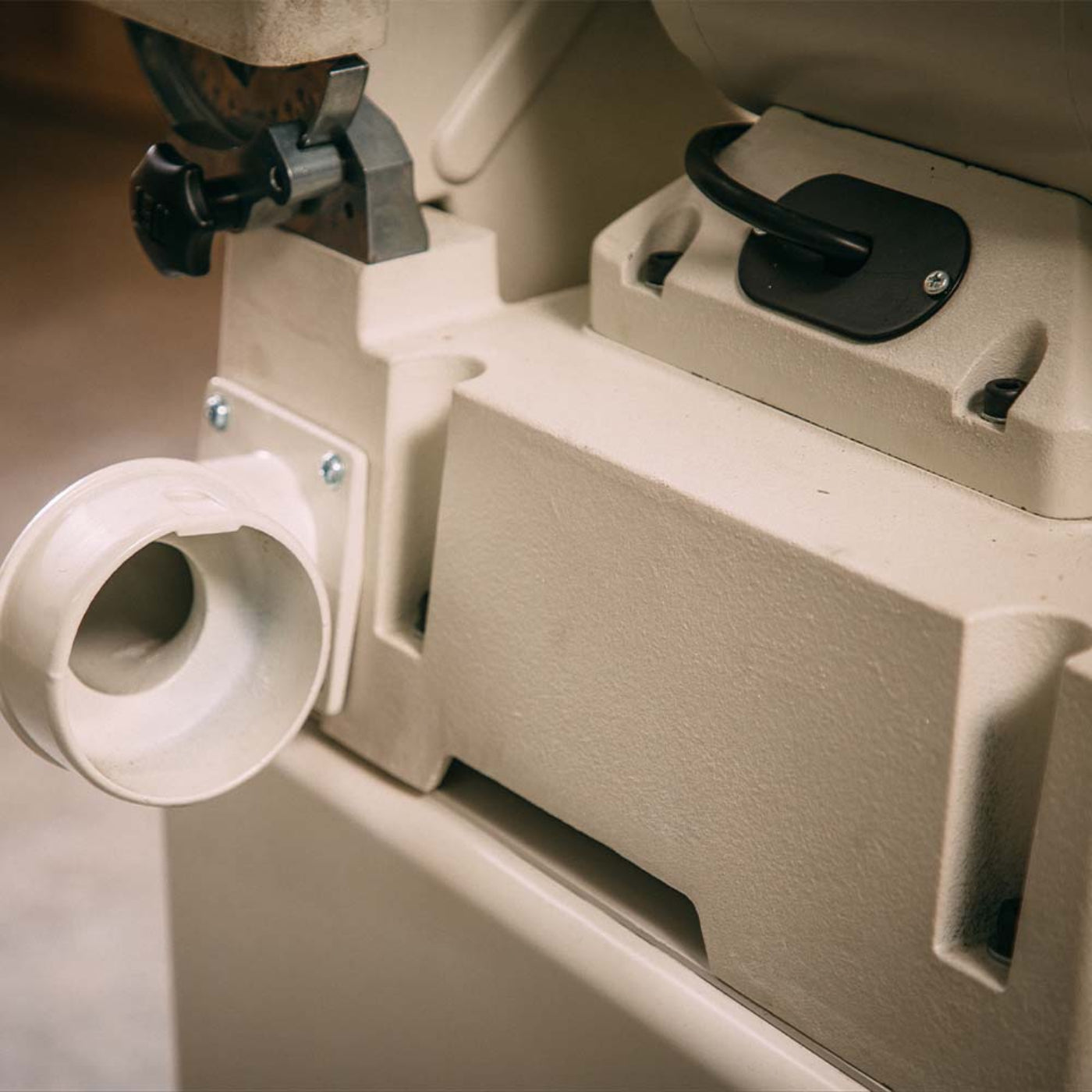 A: Yes, it features a dust port for easy hookup to a dust collection system.