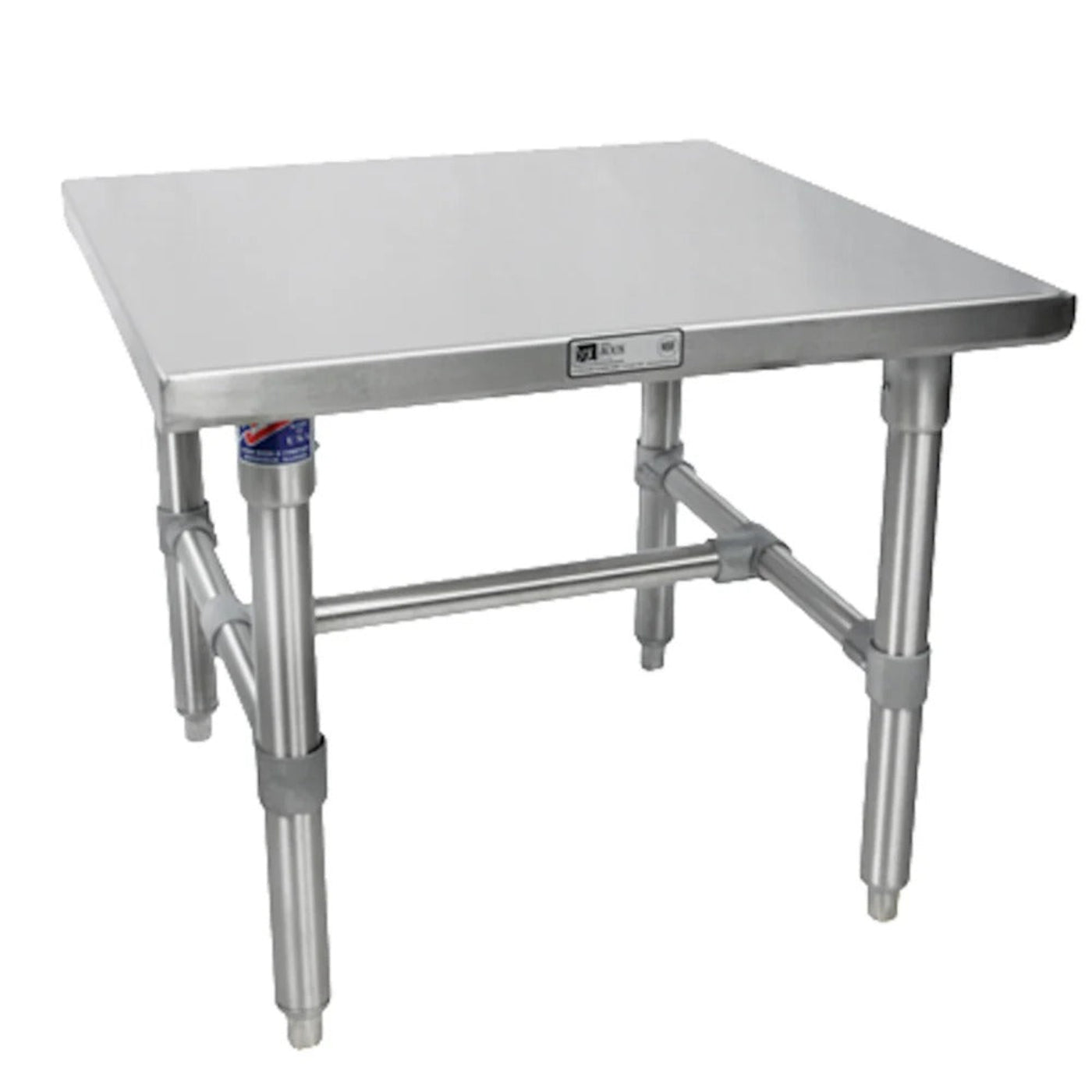 Durable, easy to assemble, and perfect for keeping your equipment at the ideal working height, this John Boos S16MS07 is a stainless steel equipment stand. It is specifically designed to hold your mixers or slicers at a proper working height. The stainless steel top is TIG welded and the exposed welds have been polished to match adjacent surfaces. Its base frame is galvanized and MIG welded. The bracing and gussets are galvanized steel. They are 100% pre-galvanized, not plated. This S16MS07 comes with 1" bullet feet.