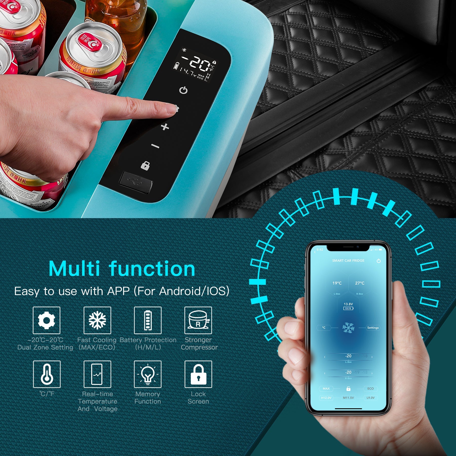 BODEGA cooler 20qt/18L Portable Car Fridge/Freezer K18 Bule - K18-blue-1