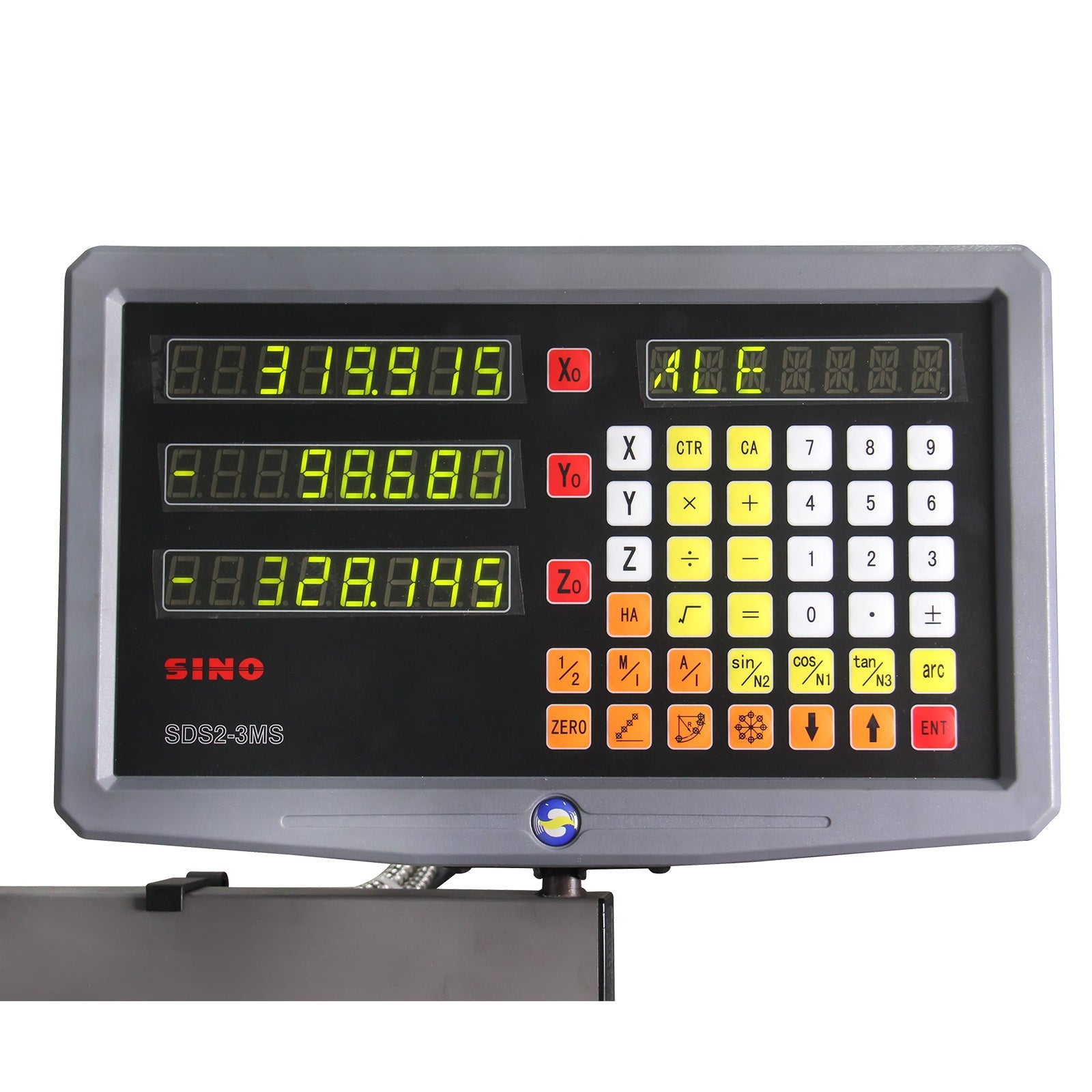 Features 3-axis DRO (Digital Readout) for accurate positioning and precise machining.