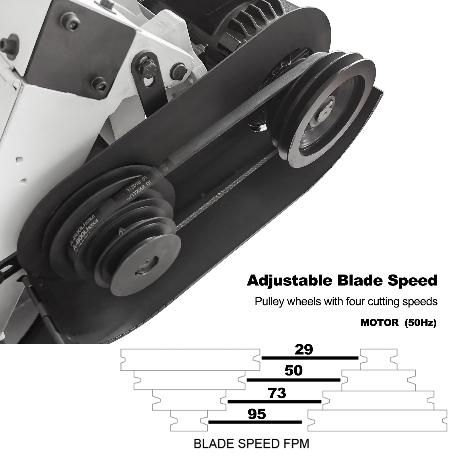 Powered by a 220V, 60Hz, single-phase motor, providing reliable performance for steel, aluminum, and other metals.