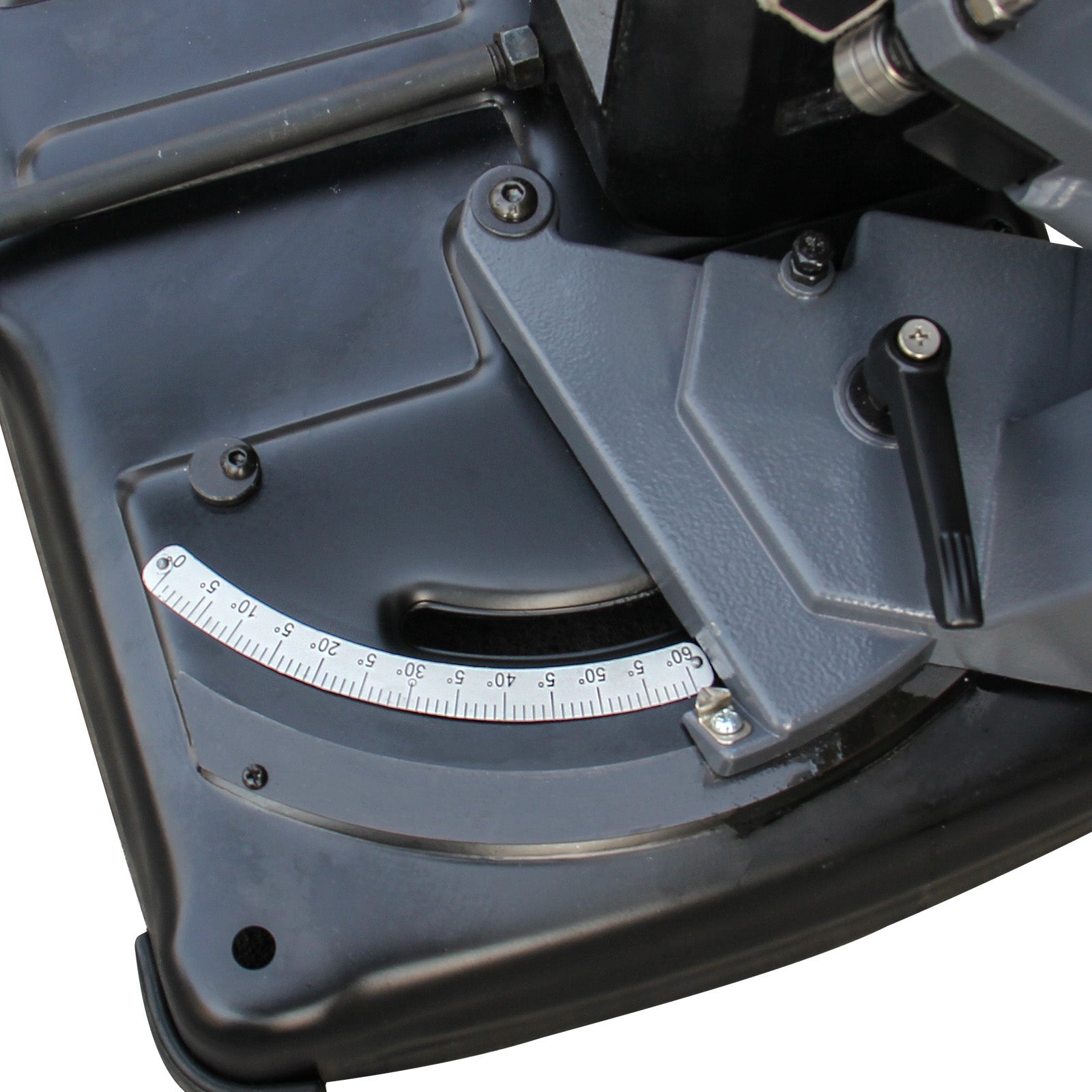 This metal-cutting bandsaw is very versatile. It swiftly and efficiently saws through a wide range of materials, including steel, aluminum, composite cable, angle iron, steel pipe, solid steel, aluminum profile, PVC pipe, and stainless steel. It offers adjustable cutting angles from 0 to 60 degrees.