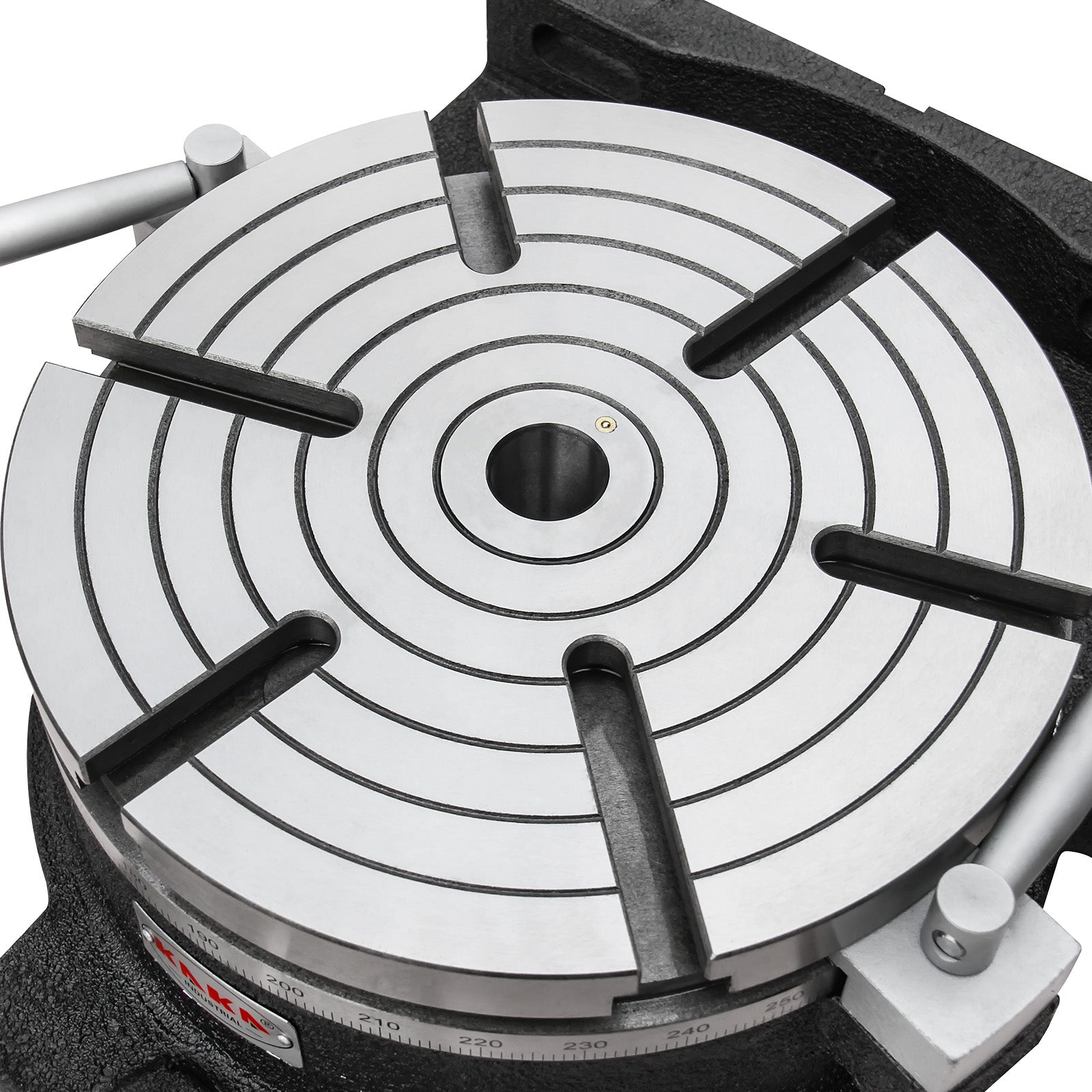 Features 360° smooth rotation with six T-slots for secure clamping of workpieces during drilling, milling, and indexing.