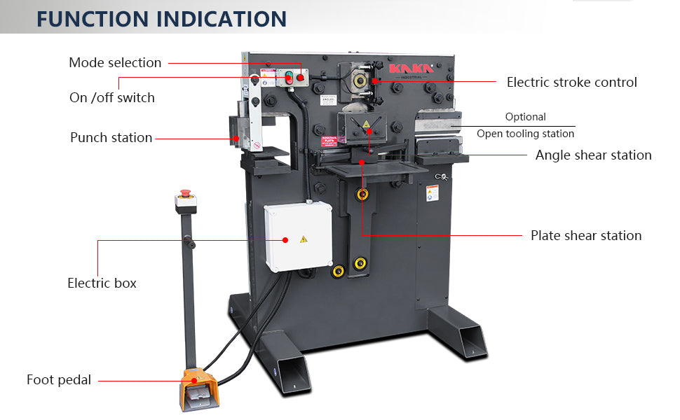 1、Ironworker is used for punch, shear, notch and brake mild steel plate, bar-stock and angle.