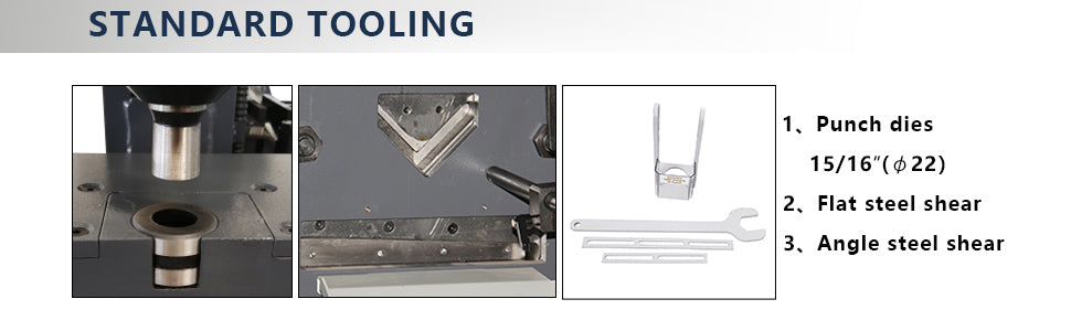 5、Standard: plate cutting sation, angle steel shear and hole punching position with 15/16" dies