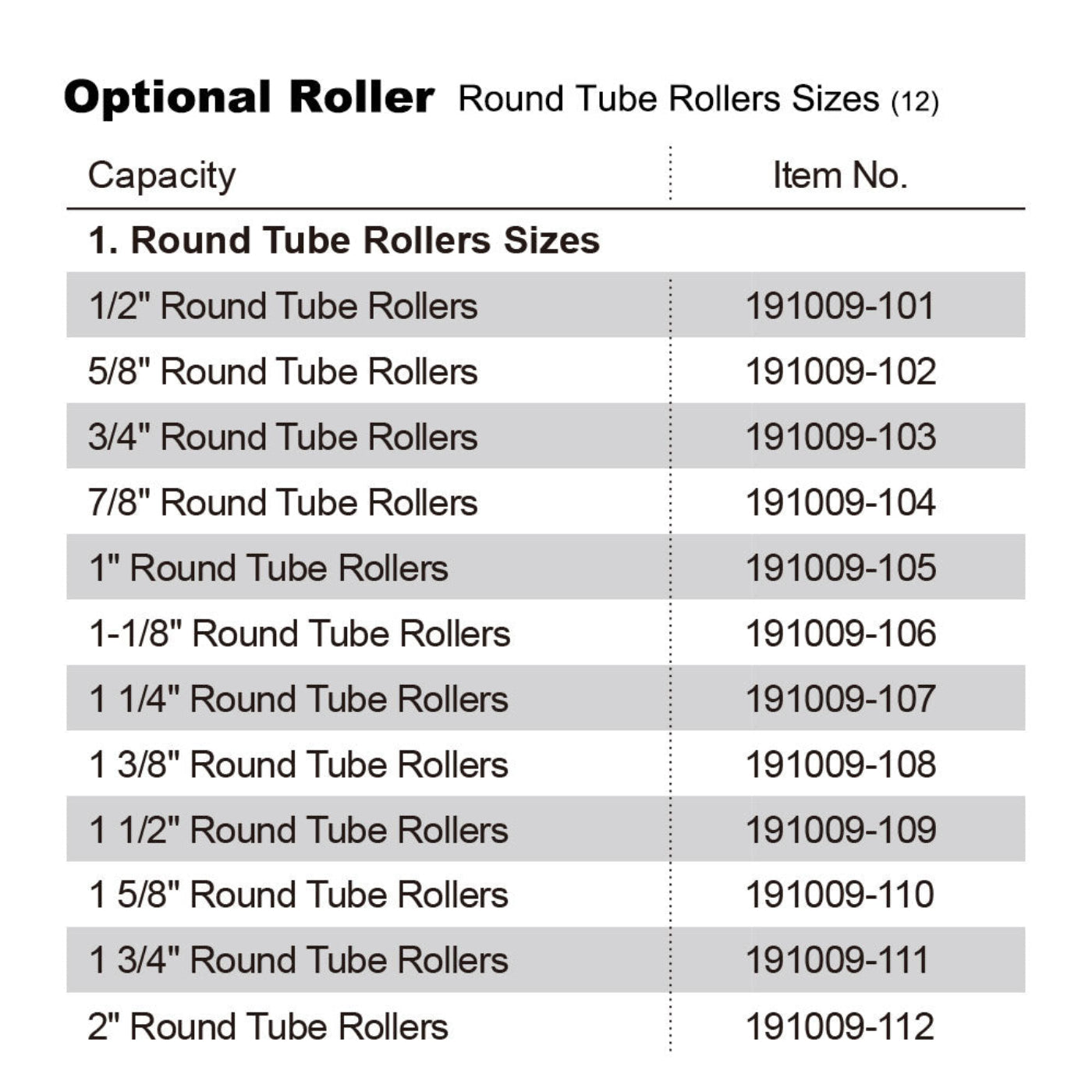 This model is sold without rollers, allowing users to customize roller sets for specific tube diameters and materials.