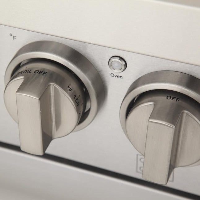 Durable cooktop: Continuous cast-iron grates allow heavy cookware to slide smoothly.