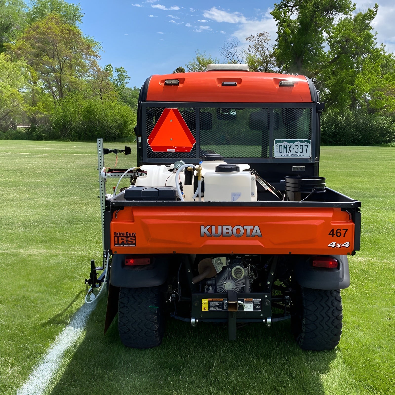 The LineRider Electric UTV Mounted Line Striper is one of the most efficient electric riding field stripers available. Simply slide it into your UTV’s bed, anchor it down, and let it do the work for you. Fits most popular UTVs (John Deere, Kabota, Ranger & others) Low pressure spray pump (0-35 psi) with 25-gallon paint tank Powered by a standard Group 24 Deep Cycle RV Battery (not included) Easy to install or remove in less than 10 minutes Includes metail paint funnel for easy filling Proudly Made in the USA 36 Month Warranty Free Shipping Available Lead Time to Ship: 15 Business Days