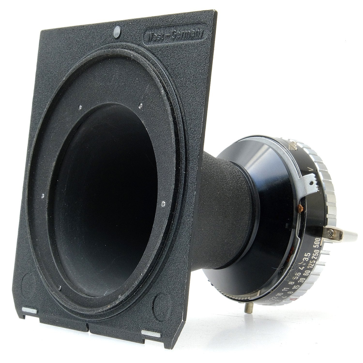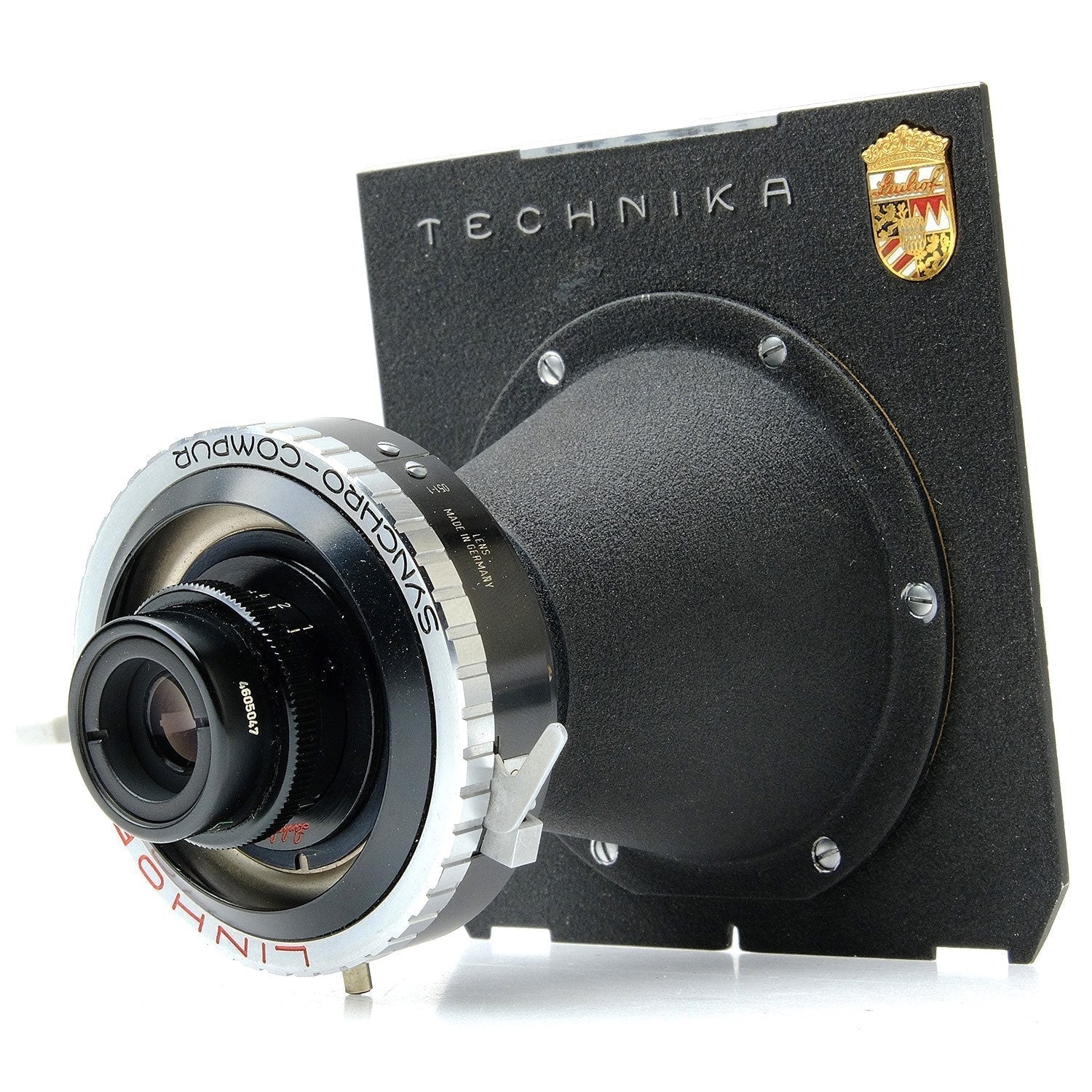 This Zeiss 40mm f4.5 Luminar Macro Lens, #4605047, is in great condition with minor handling wear. I rate it cosmetically a (9+). The aperture ring is smooth, the aperture functions properly, and the glass is clean and clear with no haze, marks, or fungus. There are a few faint specks of dust inside, but they do not affect image quality. It has coverage up to 4x5" and optimized magnification between 3.5:1 & 12:1. The included Linhof Synchro-Compur shutter is in similar condition, also rated a (9+). The shutter speed ring is smooth, but the shutter is inaccurate at speeds below 4. This lens includes a front lens cap, flared retaining ring, and a Linhof Technika conical lens board. Please refer to the photos for details.