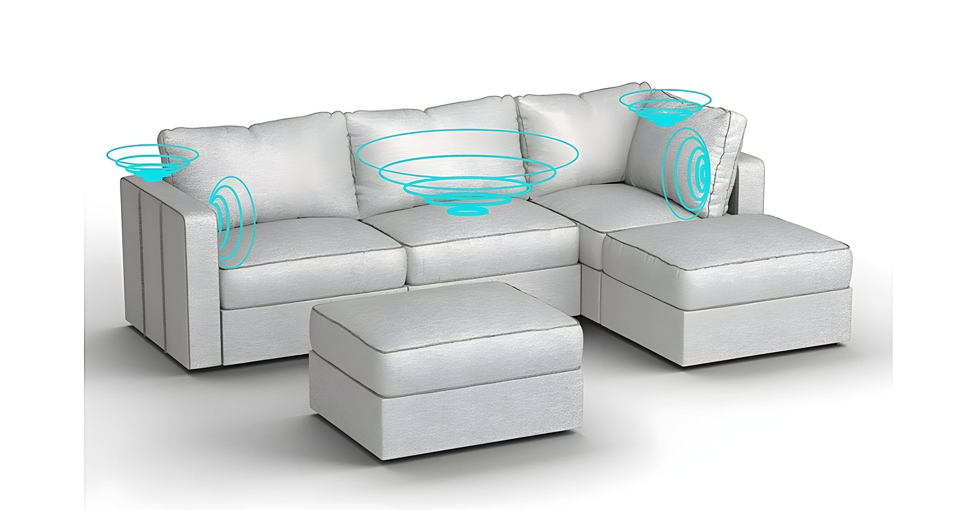 The World’s Most Adaptable Couch – Sactionals were specially designed to provide style, comfort, and peace of mind. Not only do they easily change their shape to perfectly accommodate every occasion, they can transform their color and style to always match your tastes. The Sactionals product platform provides peace of mind where other couches can’t. Spills, a growing family, or moving to a new home shouldn’t mean that your couch ends up in a landfill. Instead, we designed Sactionals to evolve as your life changes, enabling you to enjoy even more little moments along the way. Get Sactionals and experience Total Comfort. ***UPGRADE THIS SACTIONALS SETUP WITH LOVESAC STEALTHTECH*** The Sactionals StealthTech Sound + Charge System features immersive surround sound by Harman Kardon and integrated wireless charging, elegantly embedded inside Sactionals and completely hidden from view. The unique proximity and placement of the speakers and subwoofer, combined with the proprietary technology of sound frequency traveling through fabric, delivers an unparalleled, immersive audio experience. With wireless charging capabilities available where it’s needed most, remaining connected is never a problem. Use the menu above to add Sactionals StealthTech Sound + Charge to this setup.