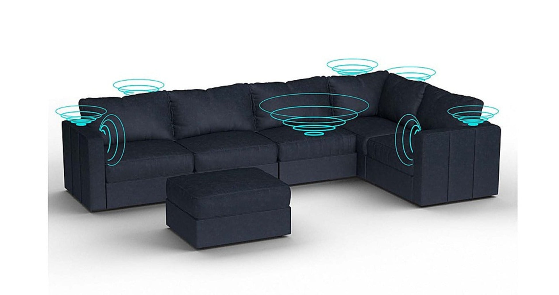 The World’s Most Adaptable Couch – Sactionals were specially designed to provide style, comfort, and peace of mind. Not only do they easily change their shape to perfectly accommodate every occasion, they can transform their color and style to always match your tastes. The Sactionals product platform provides peace of mind where other couches can’t. Spills, a growing family, or moving to a new home shouldn’t mean that your couch ends up in a landfill. Instead, we designed Sactionals to evolve as your life changes, enabling you to enjoy even more little moments along the way. Get Sactionals and experience Total Comfort. ***UPGRADE THIS SACTIONALS SETUP WITH LOVESAC STEALTHTECH*** The Sactionals StealthTech Sound + Charge System features immersive surround sound by Harman Kardon and integrated wireless charging, elegantly embedded inside Sactionals and completely hidden from view. The unique proximity and placement of the speakers and subwoofer, combined with the proprietary technology of sound frequency traveling through fabric, delivers an unparalleled, immersive audio experience. With wireless charging capabilities available where it’s needed most, remaining connected is never a problem. Use the menu above to add Sactionals StealthTech Soun