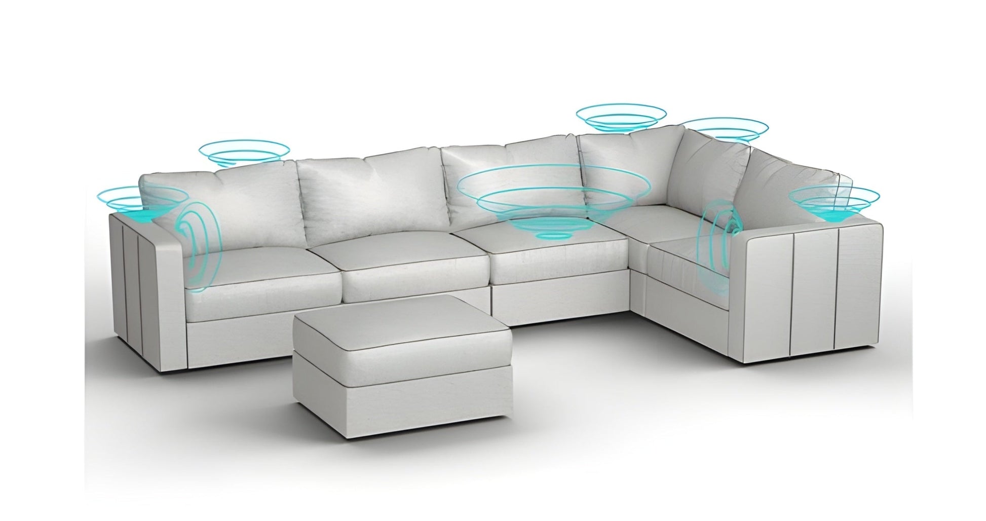 The World’s Most Adaptable Couch – Sactionals were specially designed to provide style, comfort, and peace of mind. Not only do they easily change their shape to perfectly accommodate every occasion, they can transform their color and style to always match your tastes. The Sactionals product platform provides peace of mind where other couches can’t. Spills, a growing family, or moving to a new home shouldn’t mean that your couch ends up in a landfill. Instead, we designed Sactionals to evolve as your life changes, enabling you to enjoy even more little moments along the way. Get Sactionals and experience Total Comfort. ***UPGRADE THIS SACTIONALS SETUP WITH LOVESAC STEALTHTECH*** The Sactionals StealthTech Sound + Charge System features immersive surround sound by Harman Kardon and integrated wireless charging, elegantly embedded inside Sactionals and completely hidden from view. The unique proximity and placement of the speakers and subwoofer, combined with the proprietary technology of sound frequency traveling through fabric, delivers an unparalleled, immersive audio experience. With wireless charging capabilities available where it’s needed most, remaining connected is never a problem. Use the menu above to add Sactionals StealthTech Sound + Charge to this setup.