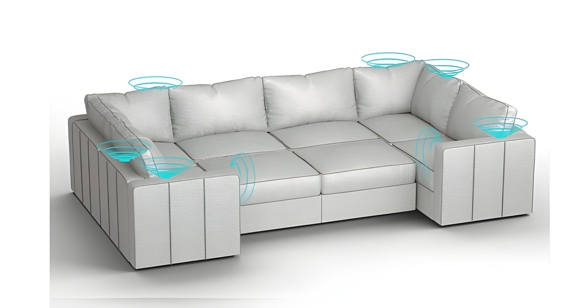 The World’s Most Adaptable Couch – Sactionals were specially designed to provide style, comfort, and peace of mind. Not only do they easily change their shape to perfectly accommodate every occasion, they can transform their color and style to always match your tastes. The Sactionals product platform provides peace of mind where other couches can’t. Spills, a growing family, or moving to a new home shouldn’t mean that your couch ends up in a landfill. Instead, we designed Sactionals to evolve as your life changes, enabling you to enjoy even more little moments along the way. Get Sactionals and experience Total Comfort. ***UPGRADE THIS SACTIONALS SETUP WITH LOVESAC STEALTHTECH*** The Sactionals StealthTech Sound + Charge System features immersive surround sound by Harman Kardon and integrated wireless charging, elegantly embedded inside Sactionals and completely hidden from view. The unique proximity and placement of the speakers and subwoofer, combined with the proprietary technology of sound frequency traveling through fabric, delivers an unparalleled, immersive audio experience. With wireless charging capabilities available where it’s needed most, remaining connected is never a problem. Use the menu above to add Sactionals StealthTech Sound + Charge to this setup.