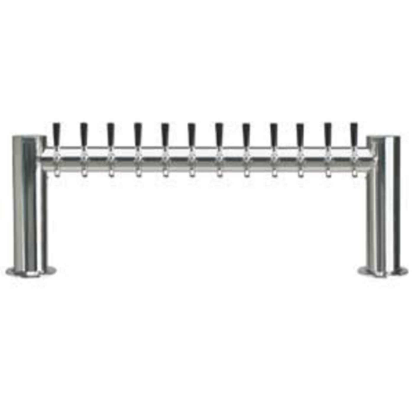 Metropolis "H" Draft Beer Tower, countertop, 44"W x 16"H, glycol-cooled (Kool-Rite™ integrated module), (12) 304 stainless steel faucets (handles not included), 3" OC, 12" faucet clearance, (2) 4" dia. columns with 6" dia. bases, 304 stainless steel product lines & leak-proof shanks, includes cooling block & copper coolant lines, mounting gaskets & hardware provided, polished stainless steel finish, NSF