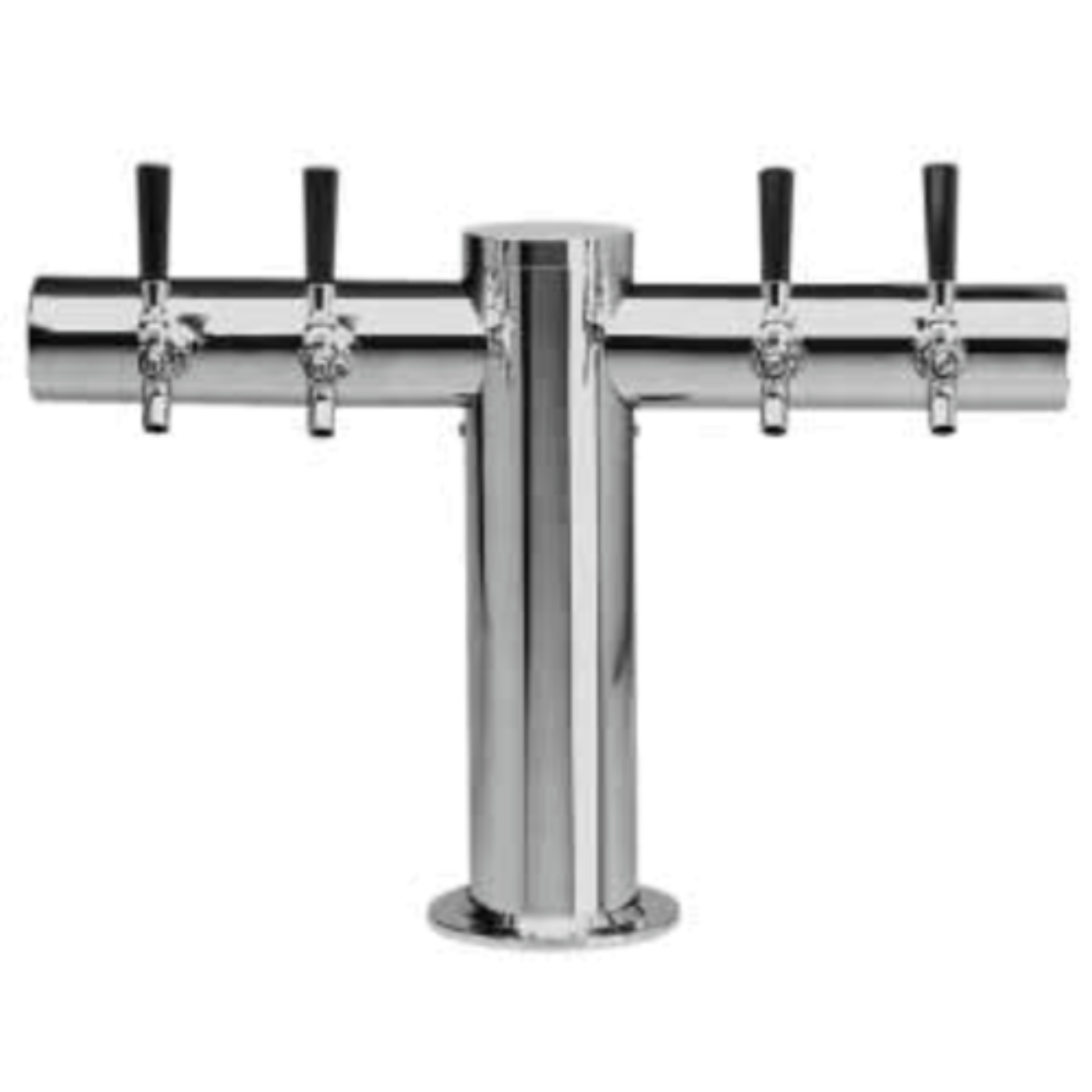 Metropolis "T" Draft Beer Tower, countertop, 24"W x 16"H, glycol-cooled (Kool-Rite™ integrated module), (4) 304 stainless steel faucets (handles not included), 5" OC, 12" faucet clearance, 304 stainless steel product lines & leak-proof shanks, includes cooling block & copper coolant lines, mounting gaskets & hardware provided, 4" dia. column with 6" dia. base, polished stainless steel finish, NSF