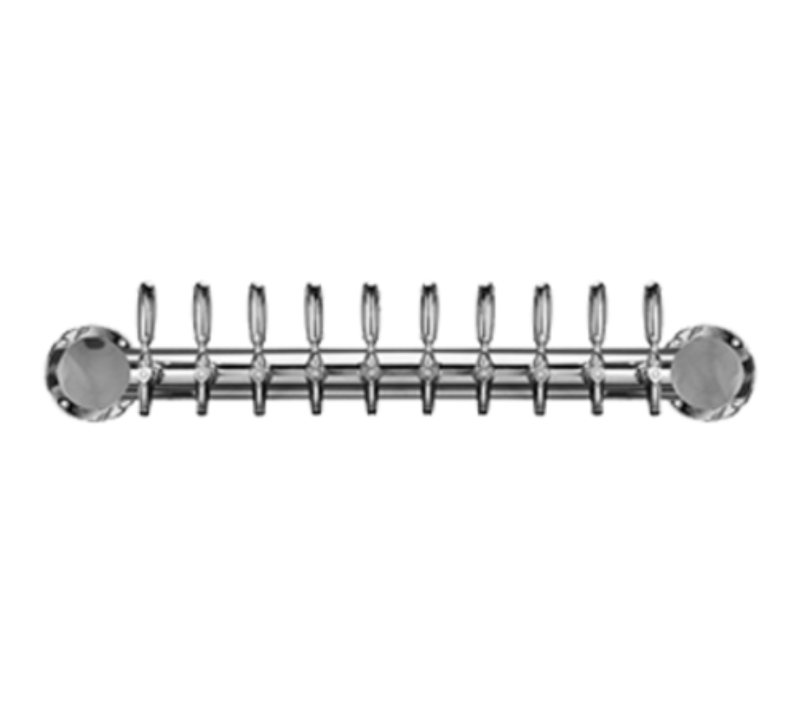 Metropolis "WM" Draft Beer Tower, wall mount, 38"W x 9"D, glycol-cooled (Kool-Rite™ integrated module), (10) 304 stainless steel faucets (handles not included), 3" OC, (2) mounting legs, 304 stainless steel product lines & leak-proof shanks, includes cooling block & copper coolant lines, mounting gaskets & hardware provided, polished stainless steel finish, NSF